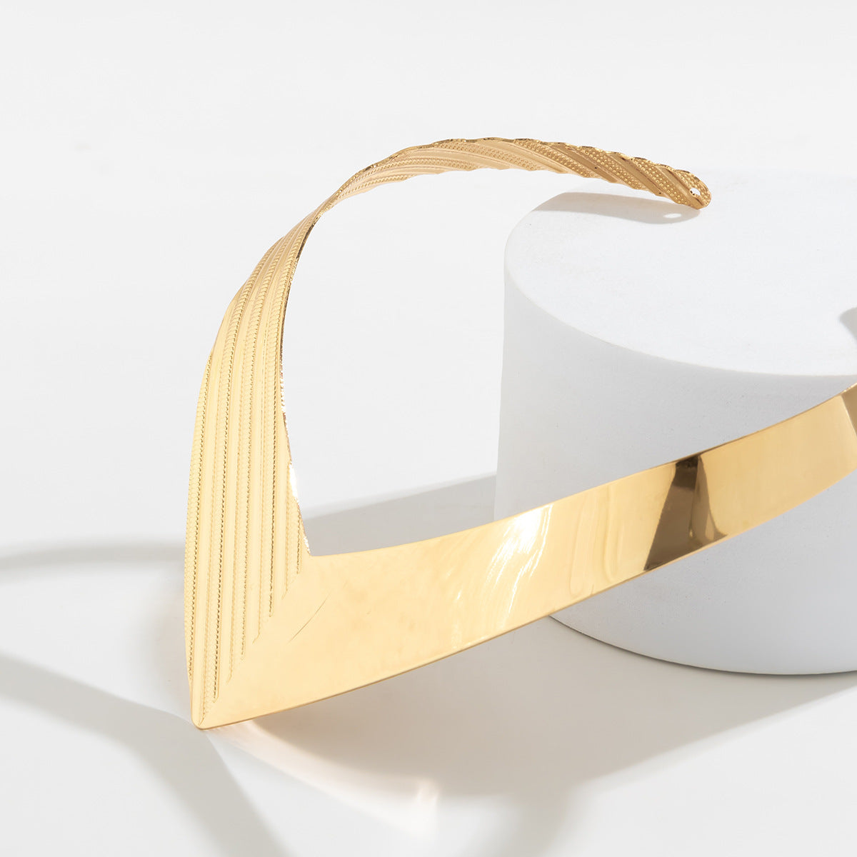African Cross-border Metal Choker Necklace with V-shaped Collar and Asymmetric Pendant