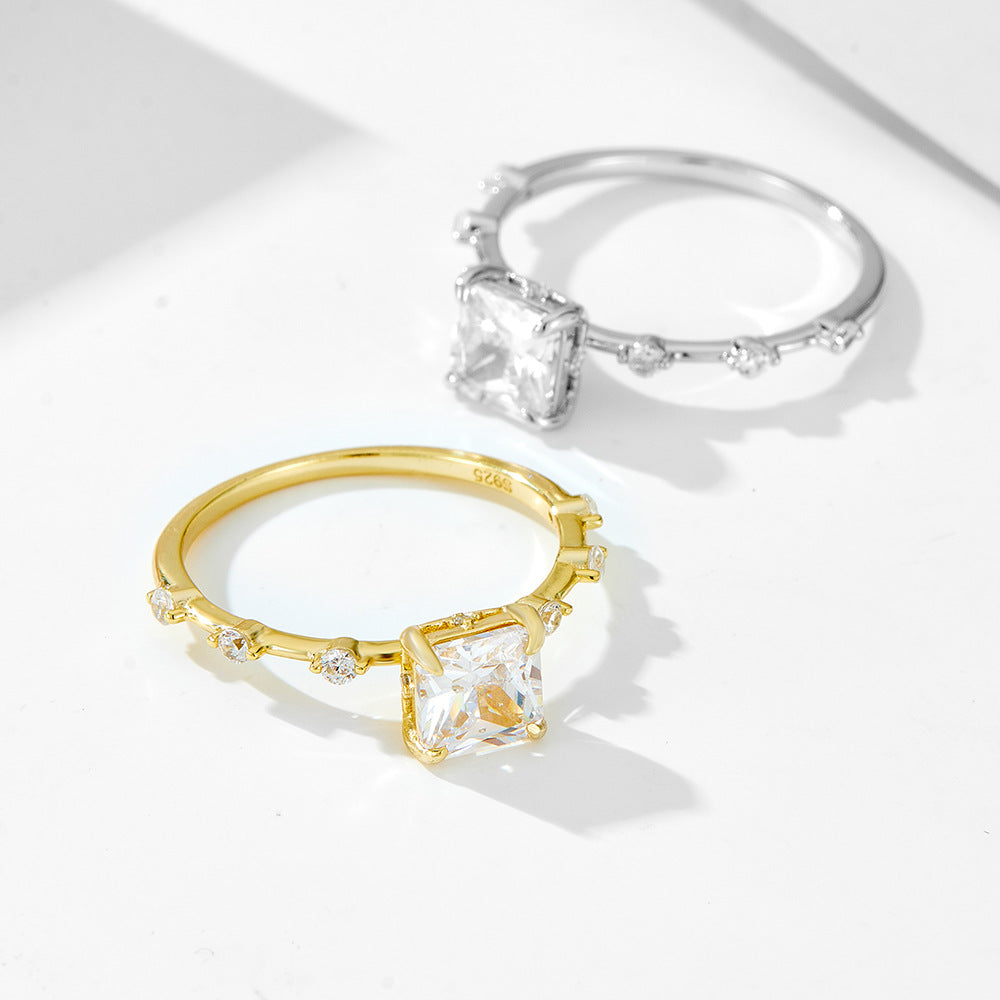A refined sterling silver zircon ring designed for European and American women who appreciate everyday luxury. The S925 ring features a princess square zircon setting that delivers subtle sparkle with a timeless, modern edge.