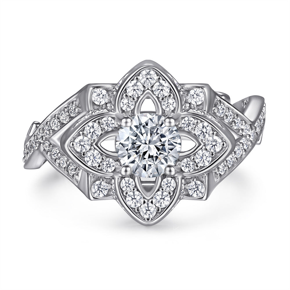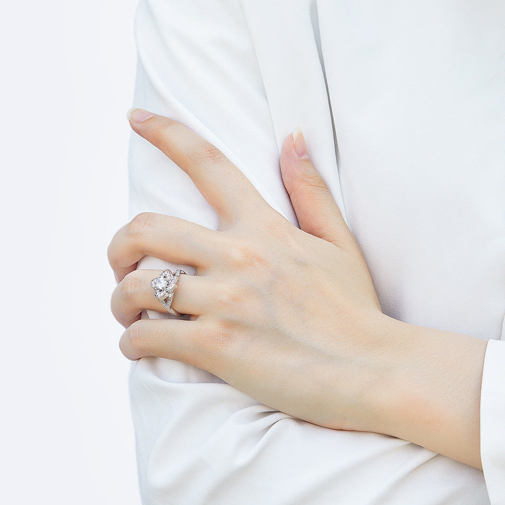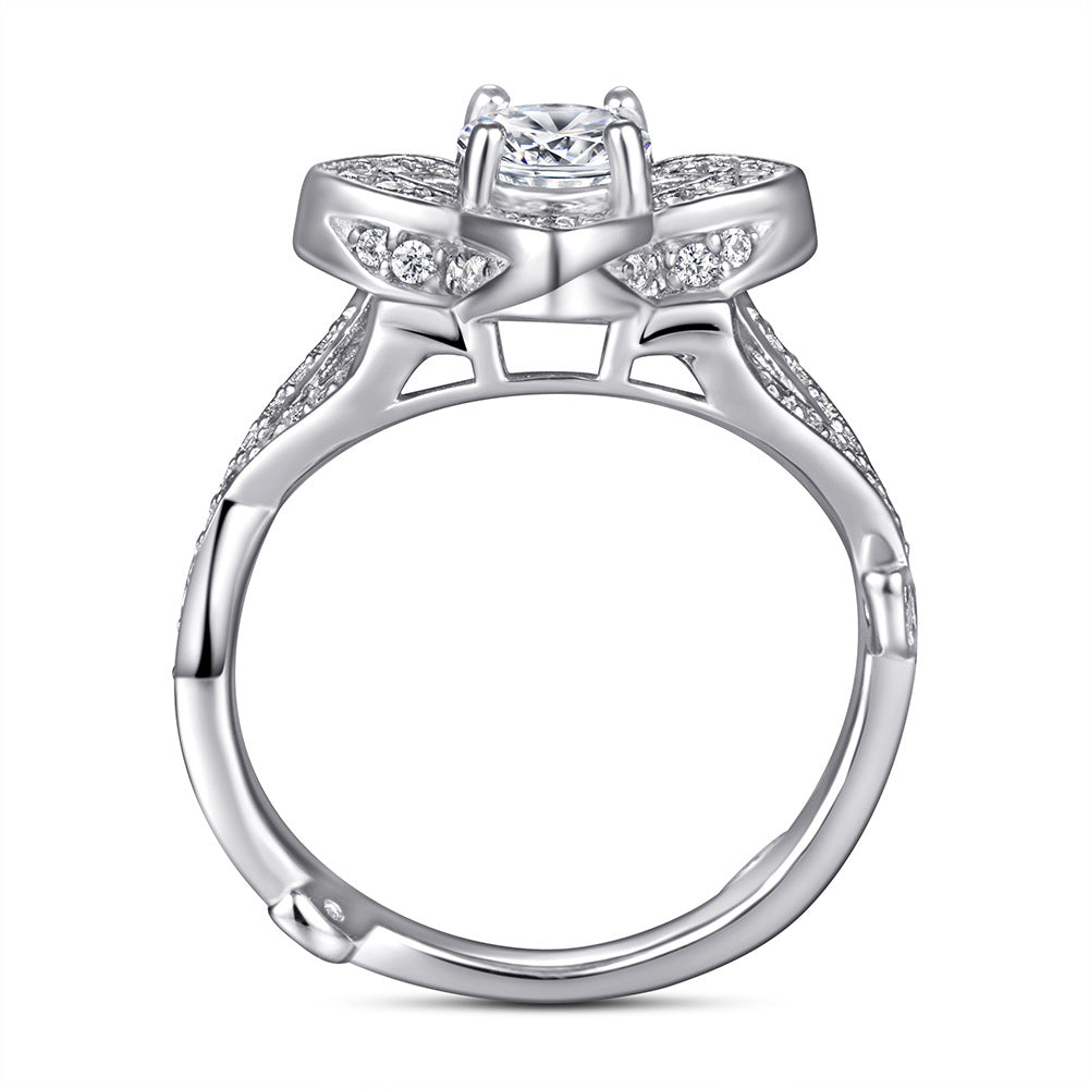Exaggerated Round Zircon Clover Cathedral Silver Ring for Women