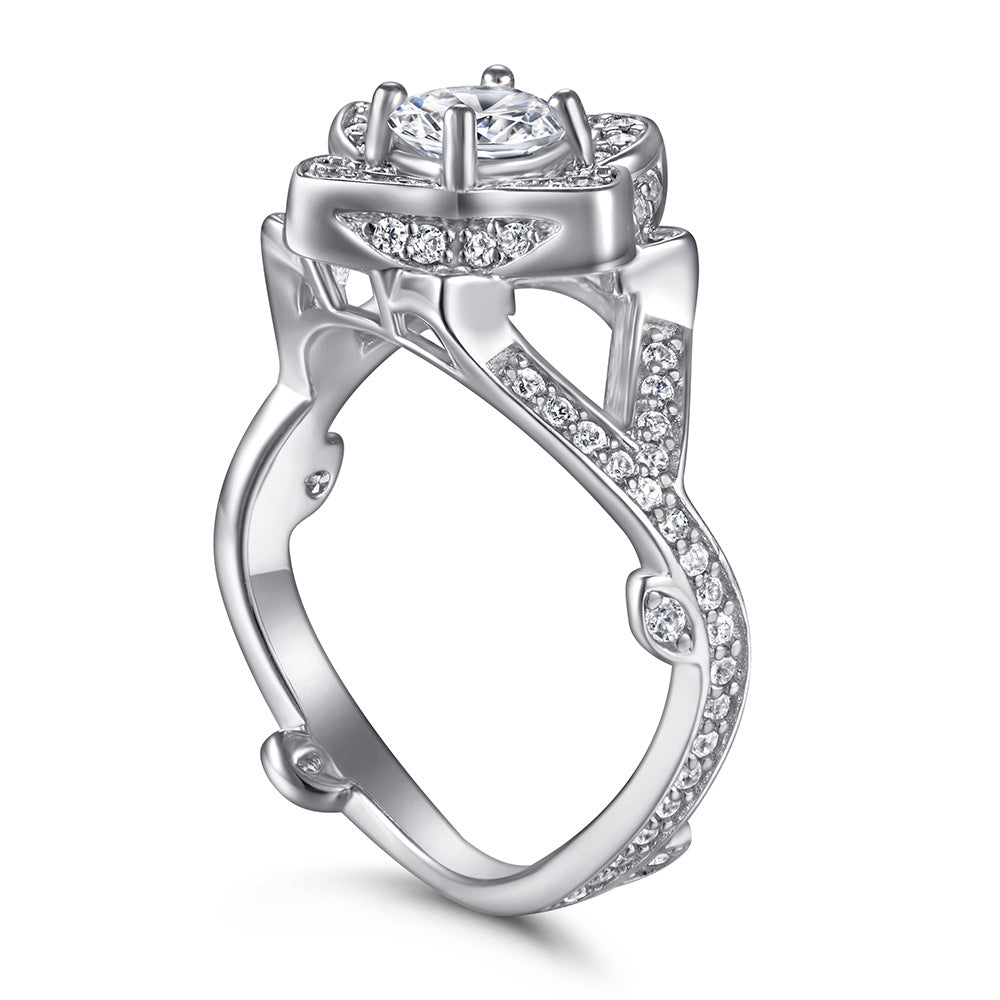 This Exaggerated Cathedral style Round Zircon Clover Silver Ring for Women will enhance any look. Featuring an exaggerated zircon four-leaf clover accented with a round zircon, this ring is finely crafted in sterling silver for a sophisticated, timeless appeal.