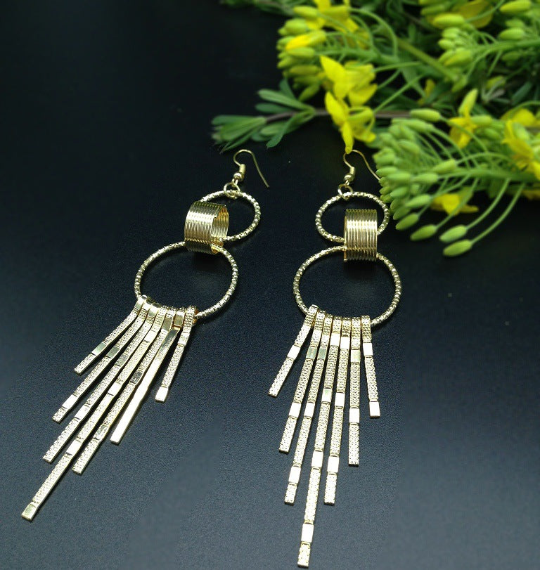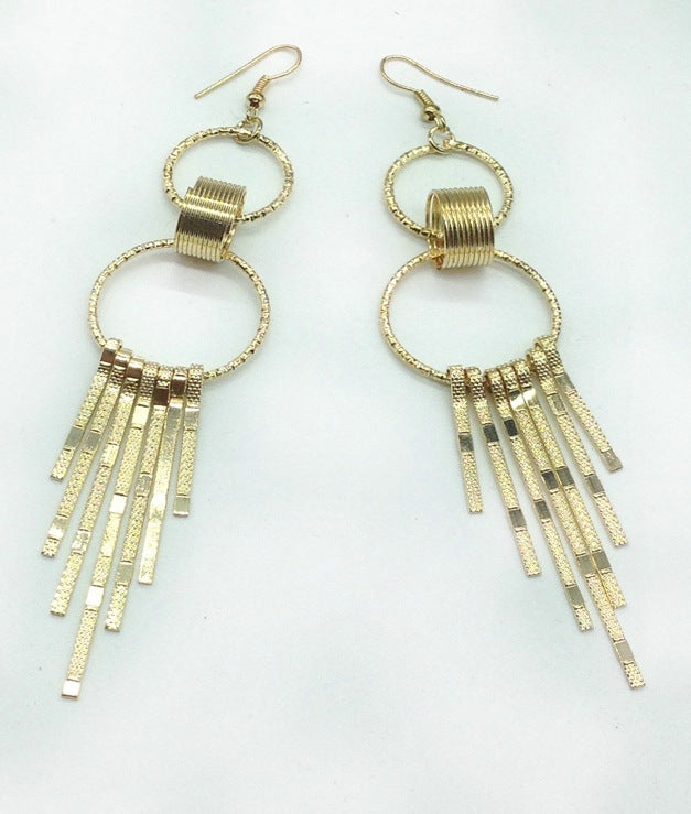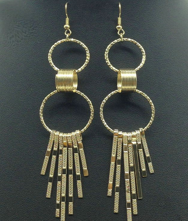 Explore the latest trend in fashion with our Exaggerated Earrings, inspired by famous European and American designs. Elevate your look with these chic Chain Circled Tassels, a must-have for any fashion-forward woman seeking to make a statement.