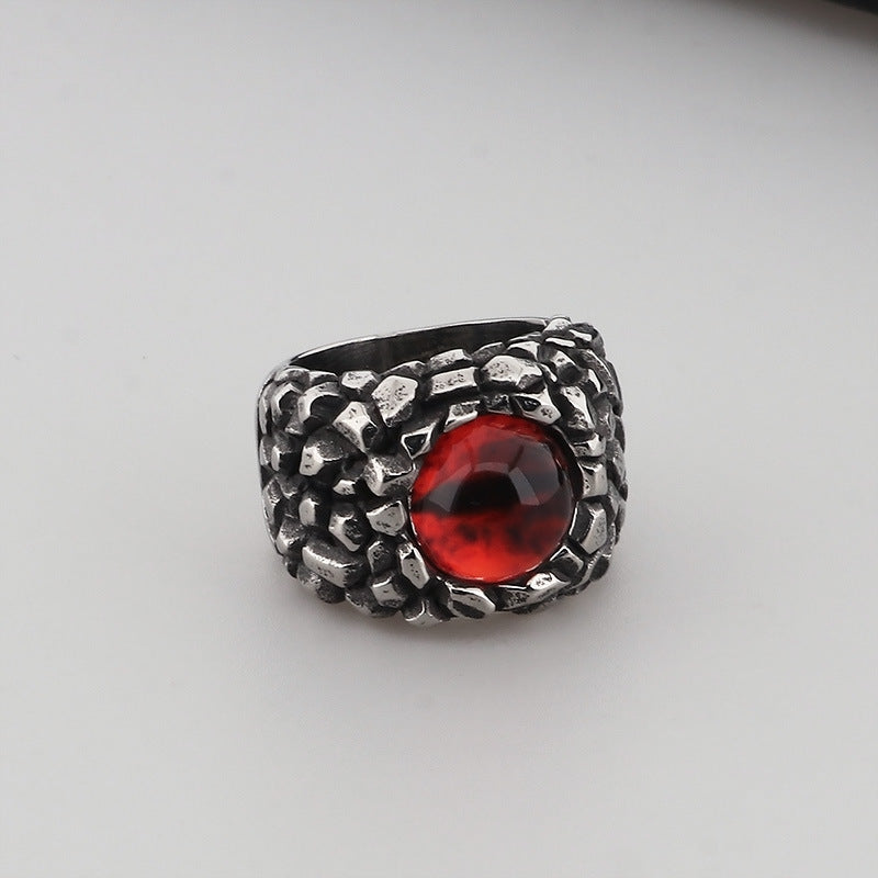 Unleash your bold side with our Exaggerated Red/Green Eye Devil's Eye Ring. This punk-style piece captures the essence of individuality and attitude, making it the perfect accessory for the modern man who dares to stand out.