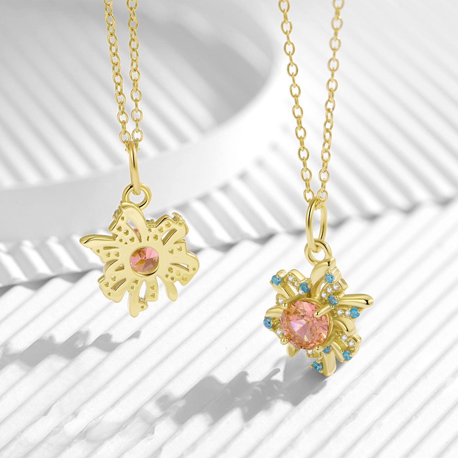 Planderful Fashion Bright Fireworks Necklace 925 Sterling Silver Electroplated 14k Gold Inlaid Morgan Orange High Carbon Zircon Chain – Elegant Sparkle and Durability