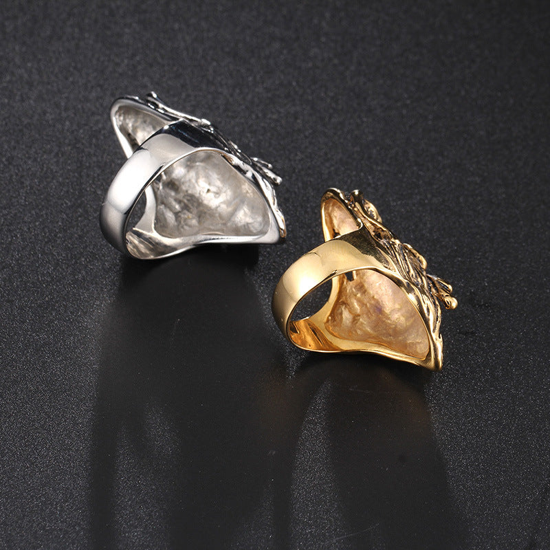 Men's Titanium Steel Ring with Dominant Loong Head Design - Trendy Fashion Accessory for European and American Styles