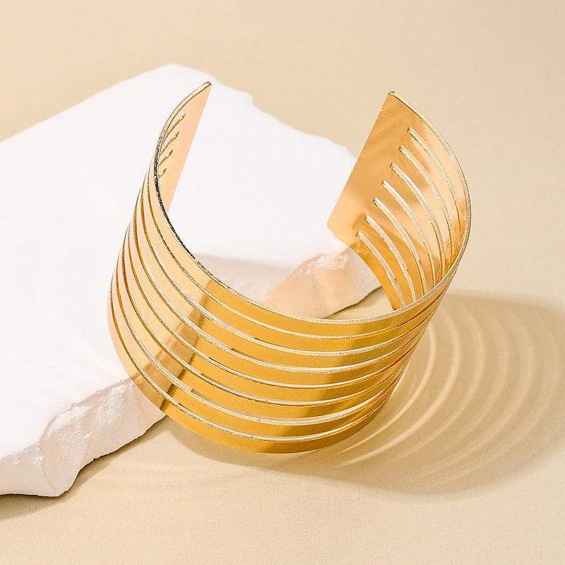Exaggerated Punk Hip Hop Striped Bracelet for Fashionable Ladies