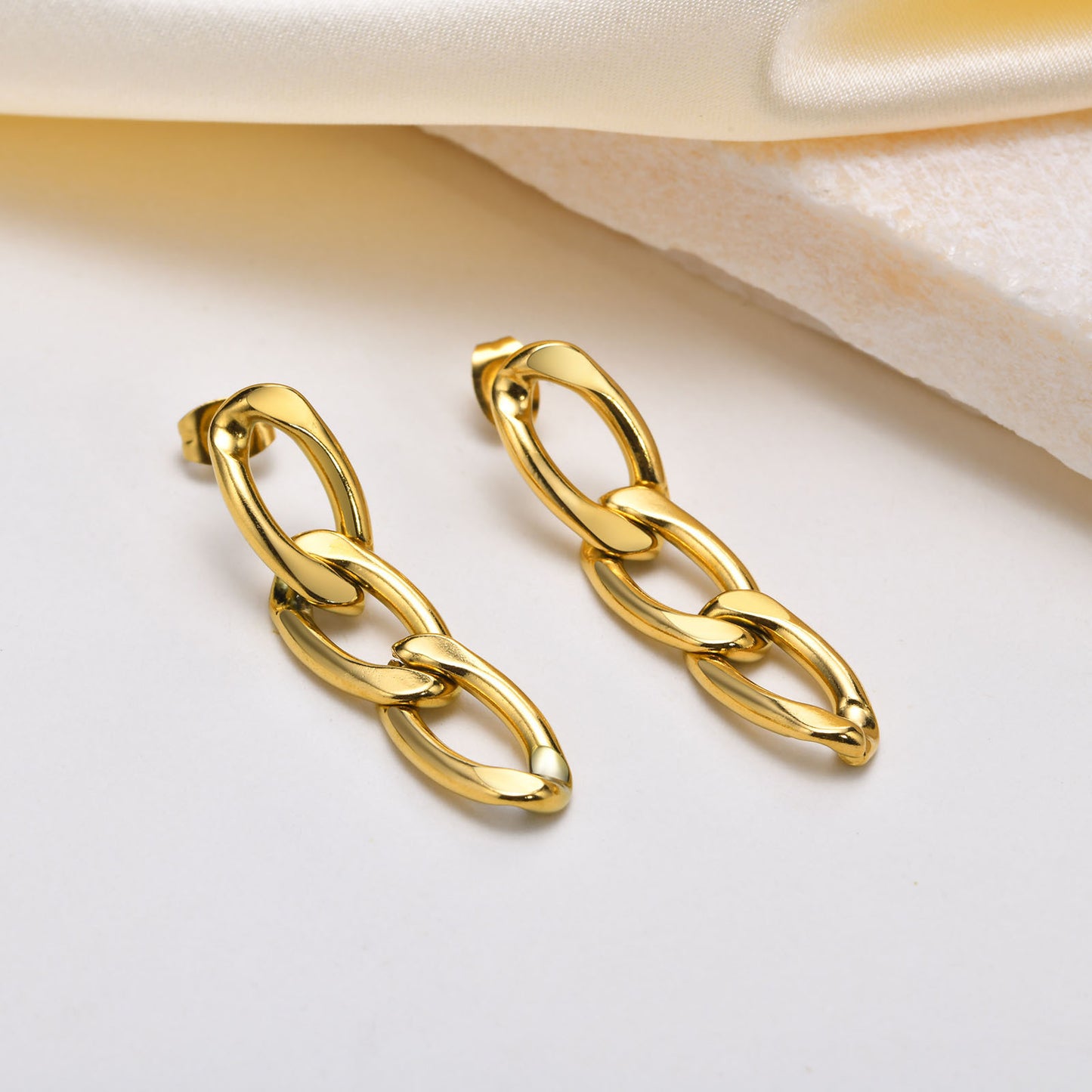 These earrings provide a perfect blend of elegance and modern style, making them suitable for both casual outings and formal events. The stunning gold finish adds a touch of sophistication, while the unique chain design ensures you stand out from the crowd. Whether you’re dressing up for a party or simply adding flair to your everyday look, our stainless steel NK chain earrings are versatile enough for any occasion.