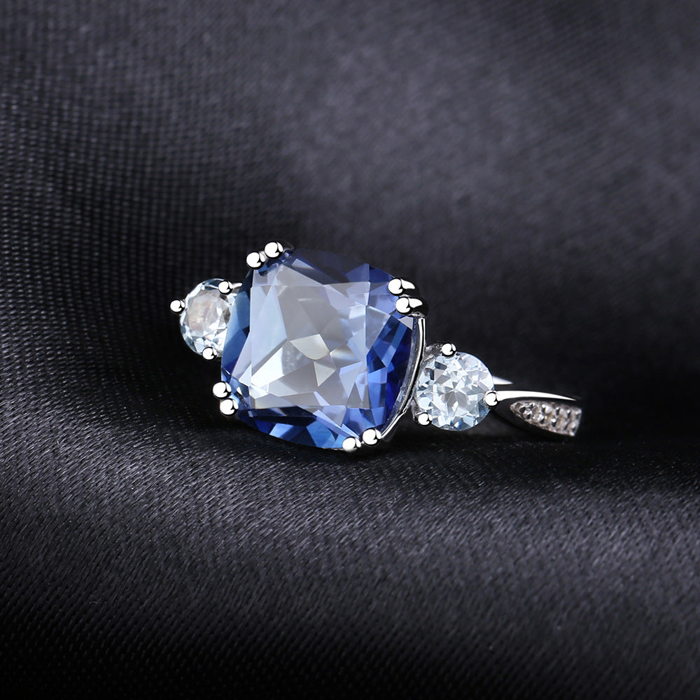 This beautiful sterling silver ring is features a cushion cut crystal as main stone and decorated with two smaller round zircons, elegantly combining a sense of modern fashion with classic luxury. Its versatile design will add a touch of sophistication to any outfit.
