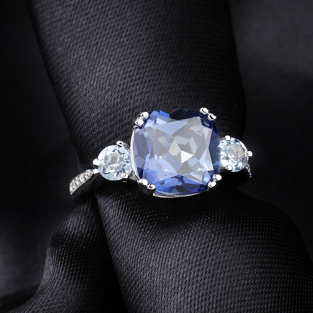 Fashion Luxury Temperament Inlaid Crystal Square Sterling Silver Ring for Women