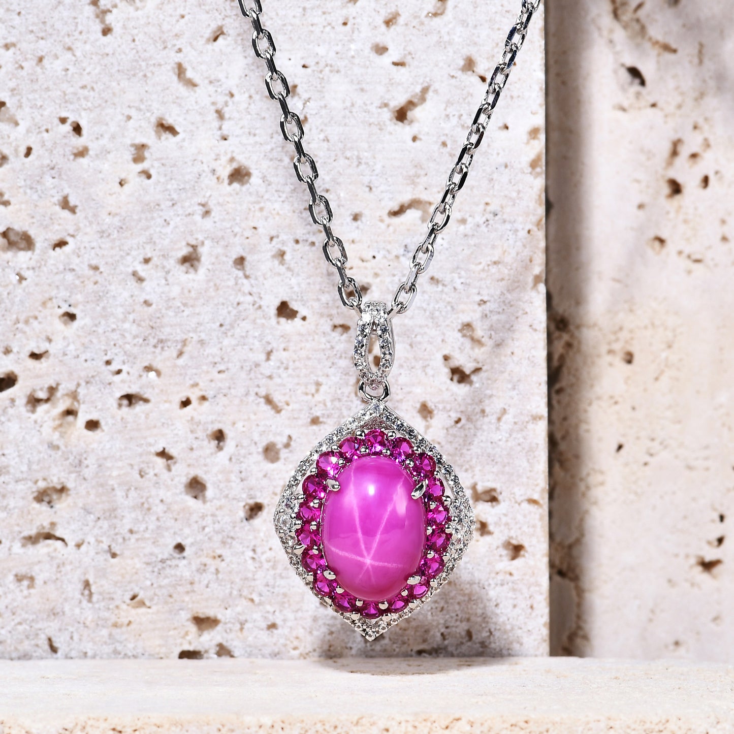 Presenting the European Fashion Luxury Jewelry Design Six Starlight Surround Inlay Colourful Gemstone with Synthetic Gemstone Soleste Halo Oval Pendant Silver Necklace for Women. Featuring a beautiful starlight oval synthetic gemstone pendant surrounded by a breathtaking inlay of colourful gemstones, this luxurious necklace is the perfect way to elevate any ensemble. With its eye-catching synthetic gemstone and sparkly halo, this necklace is sure to become a timeless jewelry.
