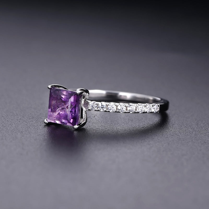 This Fashion Luxury ring makes an eye-catching accessory with its inlaid square natural colorful gemstone. The ring arm is further decorated with small zircons, adding a touch of elegance. Crafted from luxury sterling silver, this ring is the perfect addition to any woman's jewelry collection.