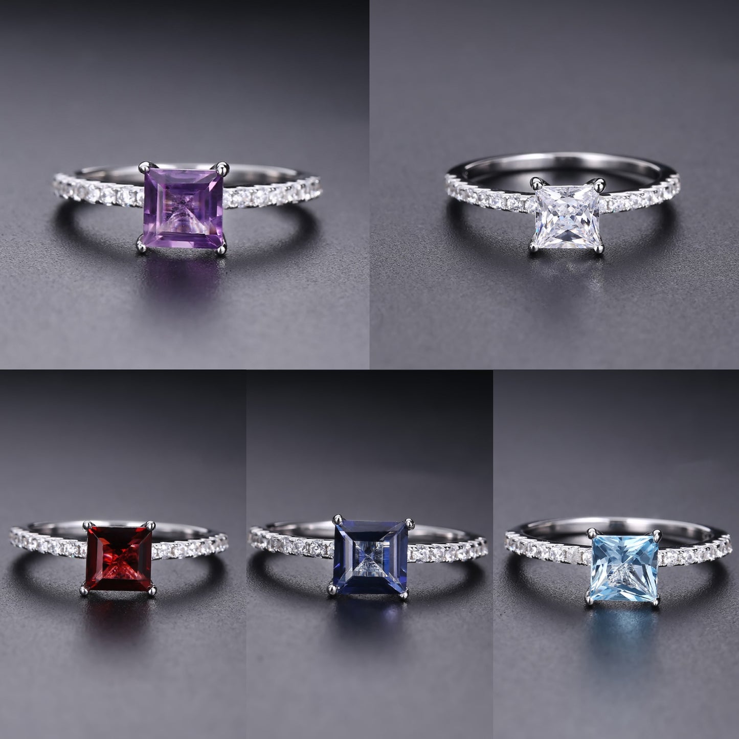 Fashion Luxury Inlaid Natural Colorful Square Gemstone S925 Silver Ring for Women