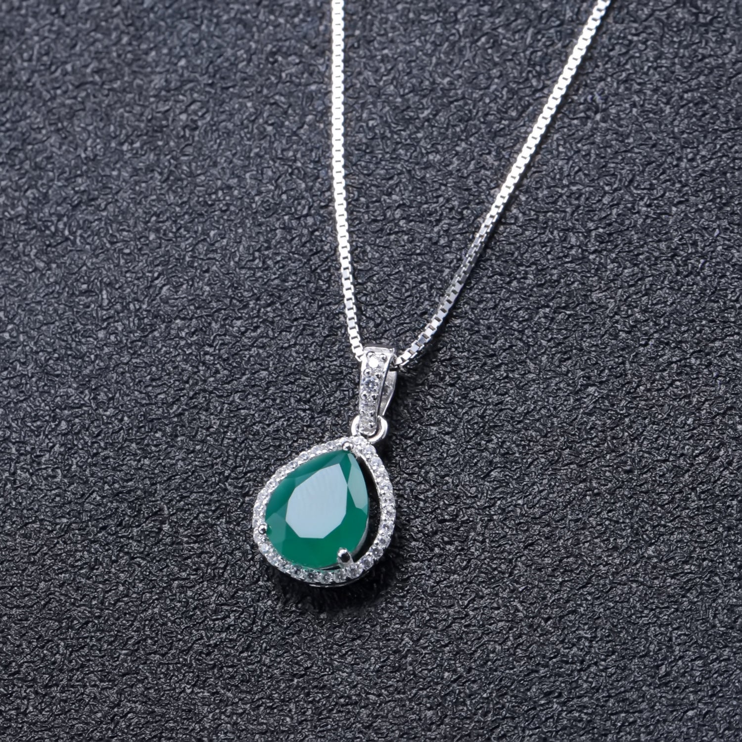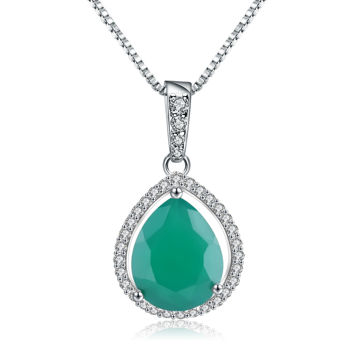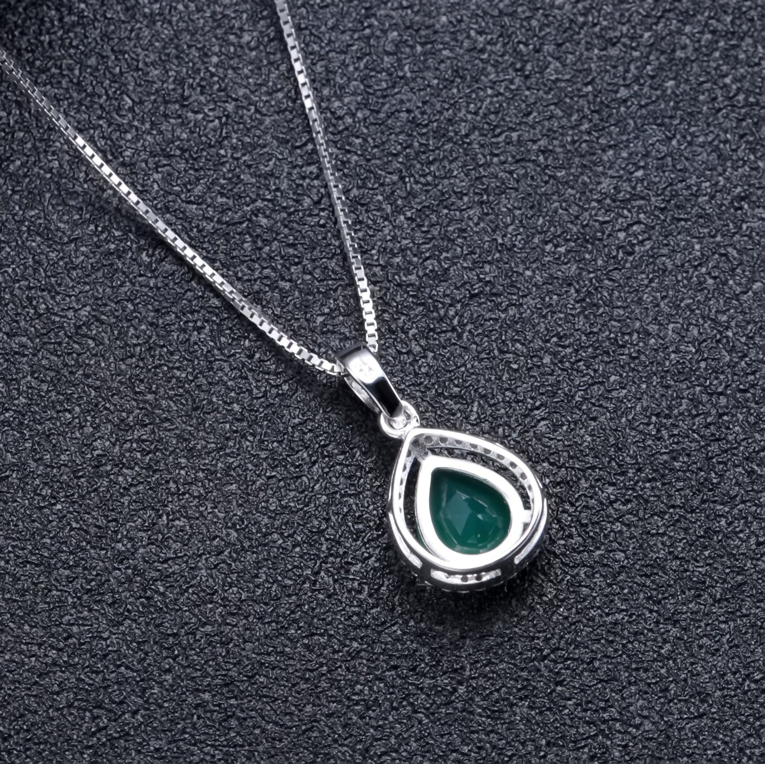 Luxury Charm Style Inlaid Green Agate Soleste Halo Pear Drop Pendant Sterling Silver Necklace for Women