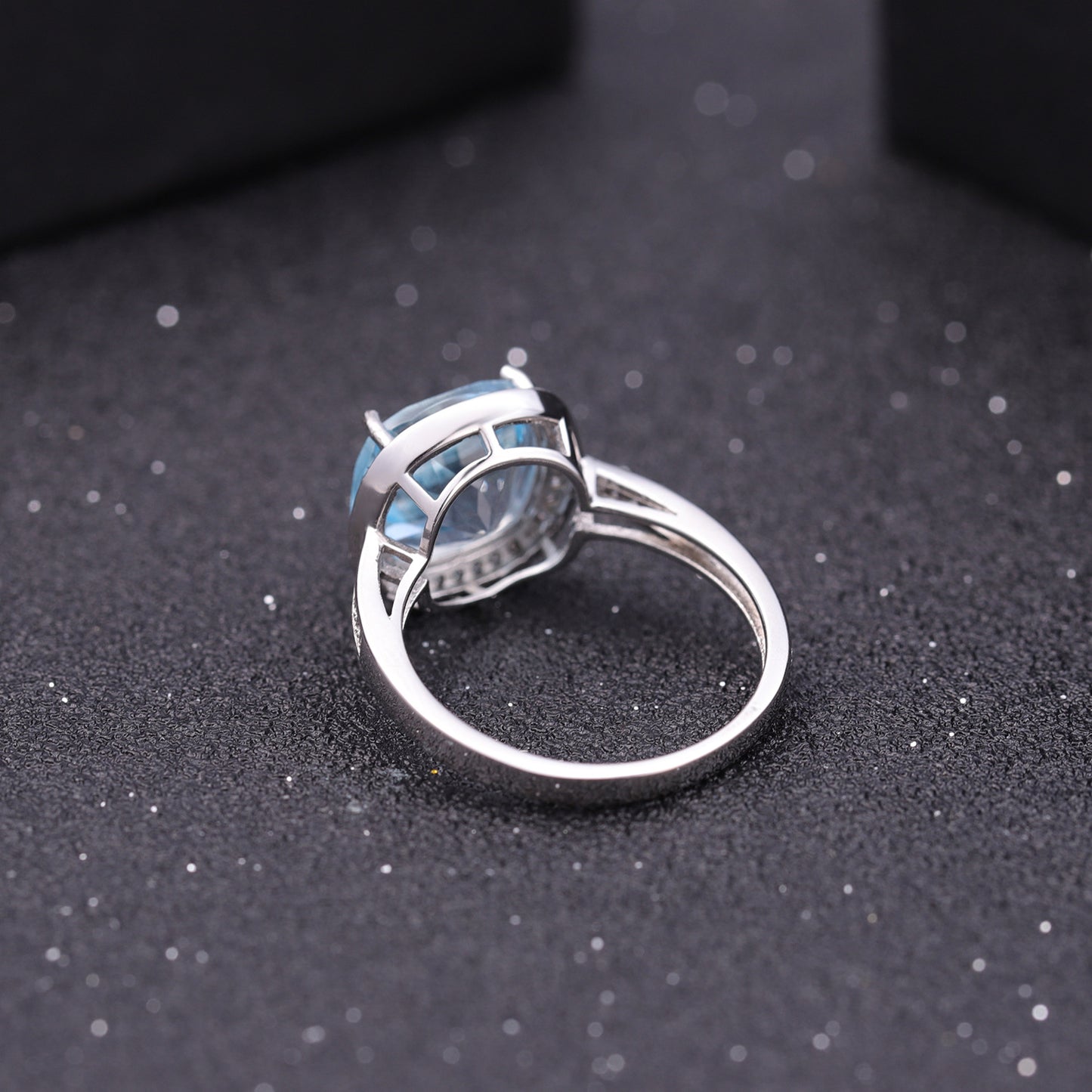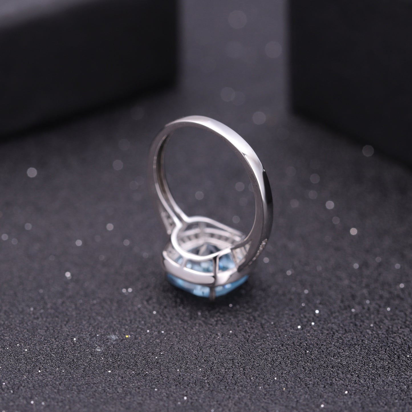 Natural Topaz 10 * 10mm Square Soleste Halo Silver Ring for Women