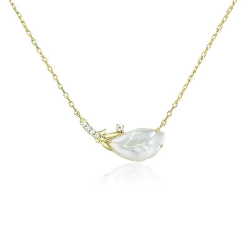 Mother-of-pearl Feather with Zircon Pendant Silver Necklace for Women
