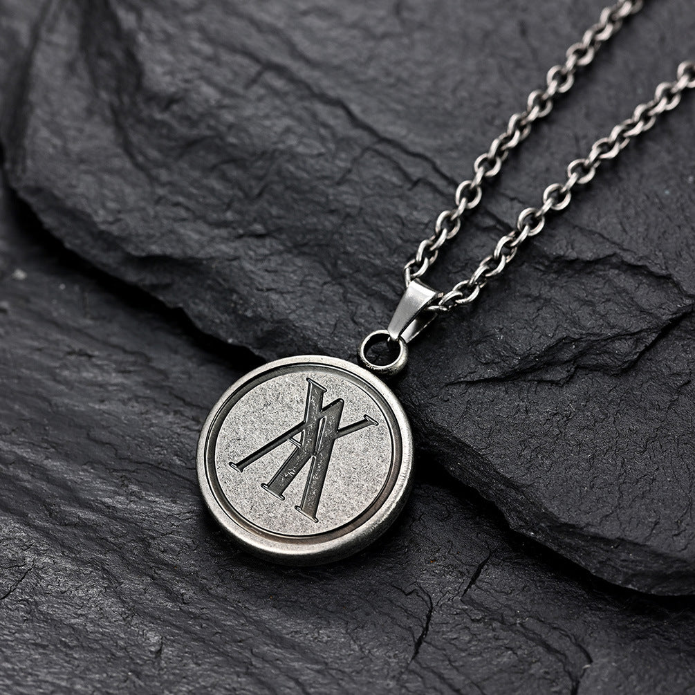 Elevate your style with the Fengfan Trendy Brand LOGO Pattern Round Pendant Necklace, a perfect blend of retro charm and modern elegance. This stainless steel necklace for men is designed for the fashion-forward individual who appreciates quality and craftsmanship.