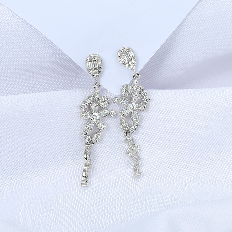 Stylish Flower with Zircon Silver Drop Earrings for Women