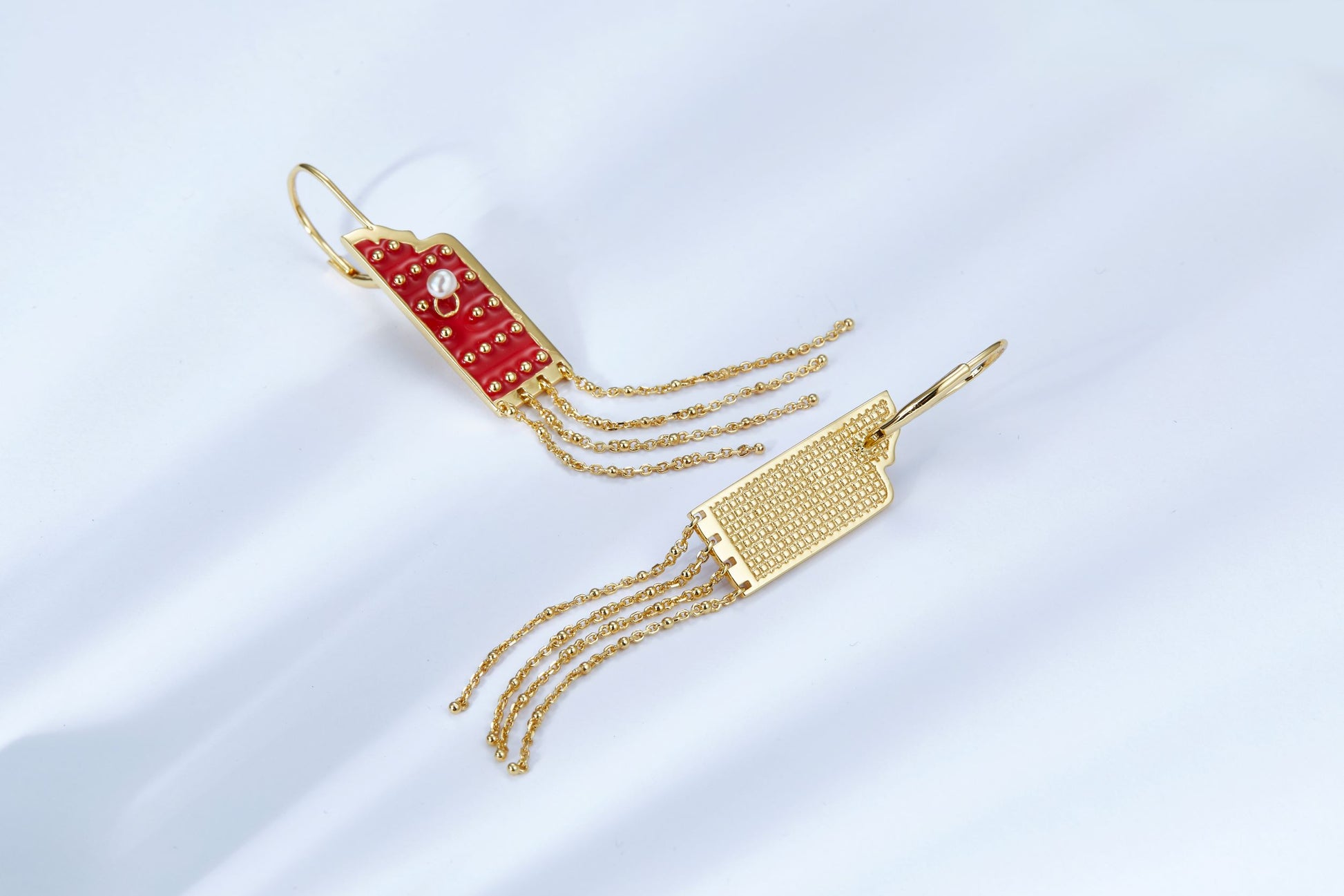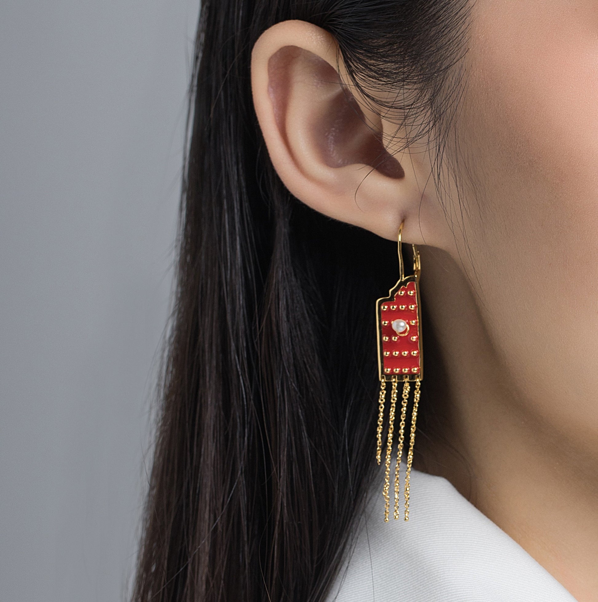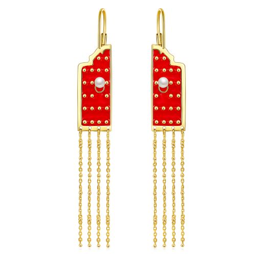 This Forbidden City Gate enamel earrings are a perfect gift for yourself or someone you cherish. The Forbidden City Gate design is crafted with red enamel to give it a classic look and unique design. Pearl hang from the Gate to bring out the classic colour contrast. The subtle tassel design adds a special touch to give the earrings an elegant look.