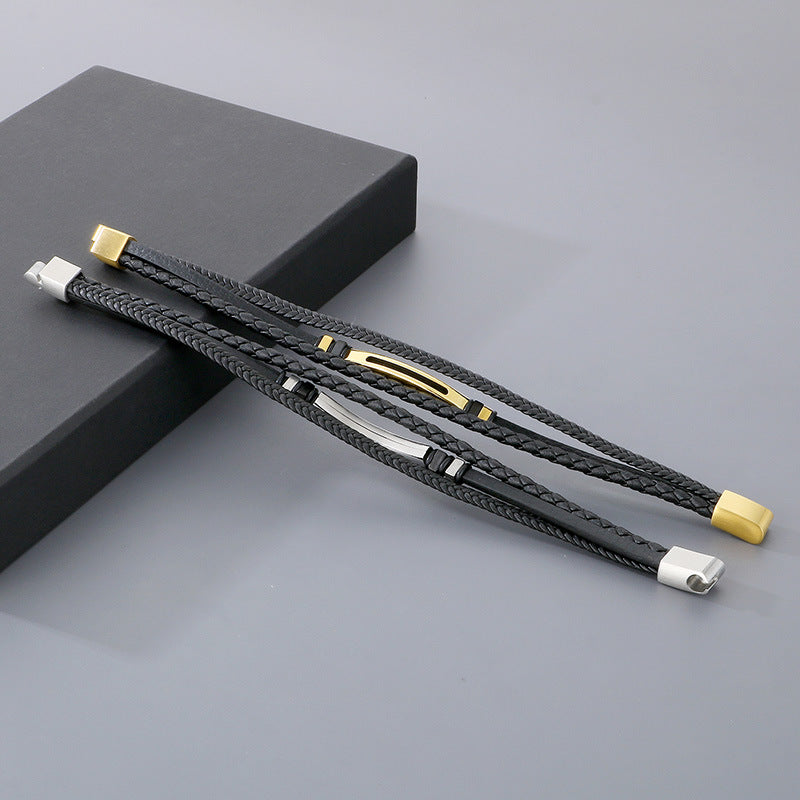 Planderful presents the Everyday Genie stainless steel leather rope bracelet for men—a simple, multi-layer black leather woven design that adds a bold accent to casual and smart-casual outfits. Popular across Europe and America, this bracelet blends durable metal with sleek leather for everyday wear.