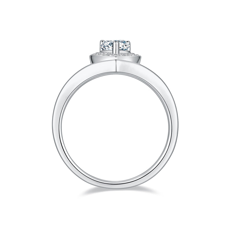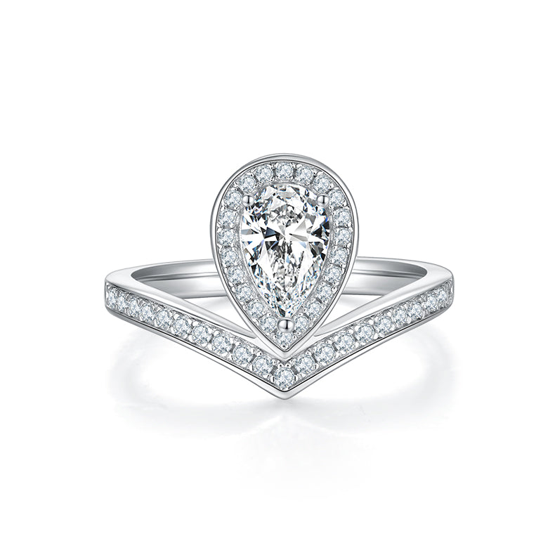 V Shape Soleste Halo 1.0 Carat Pear Cut Moissanite Engagement Ring