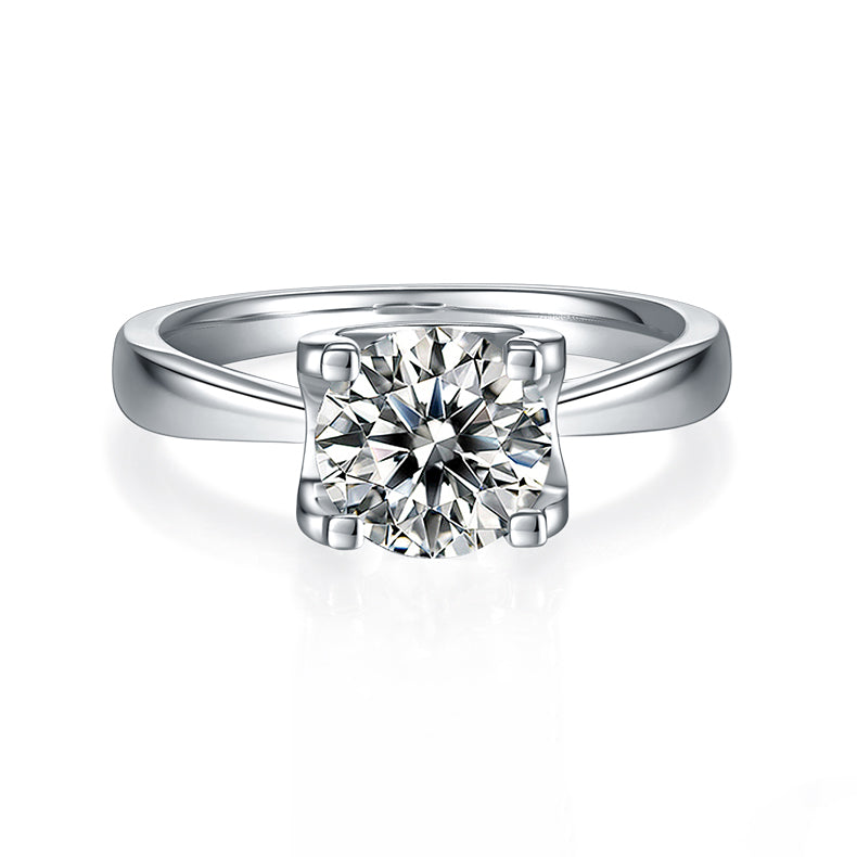 This elegant and timeless solitaire Moissanite ring is designed for women who appreciate classic and sophisticated jewelry pieces. It features a 1.5-carat round cut Moissanite stone, with high colour and purity, allowing shiny in any occasion. The ox-head four-prongs design is the characteristics of this ring to make the Moissanite more prominent and sparkly.