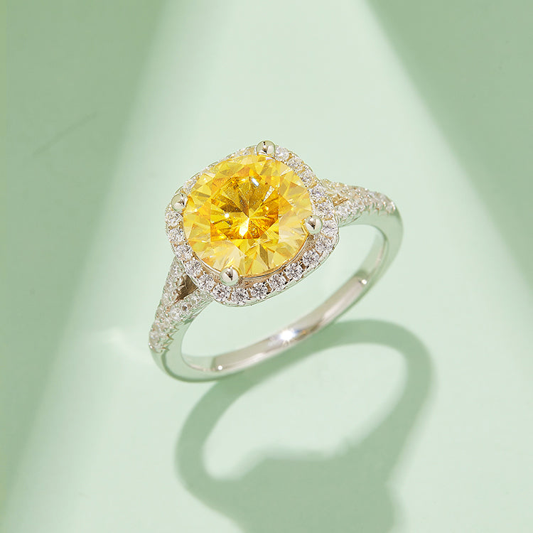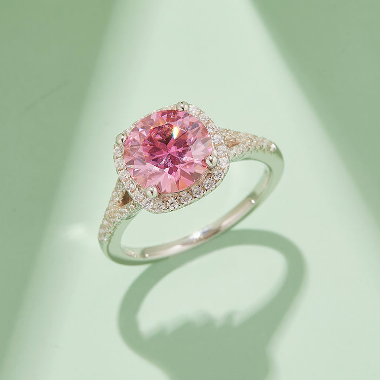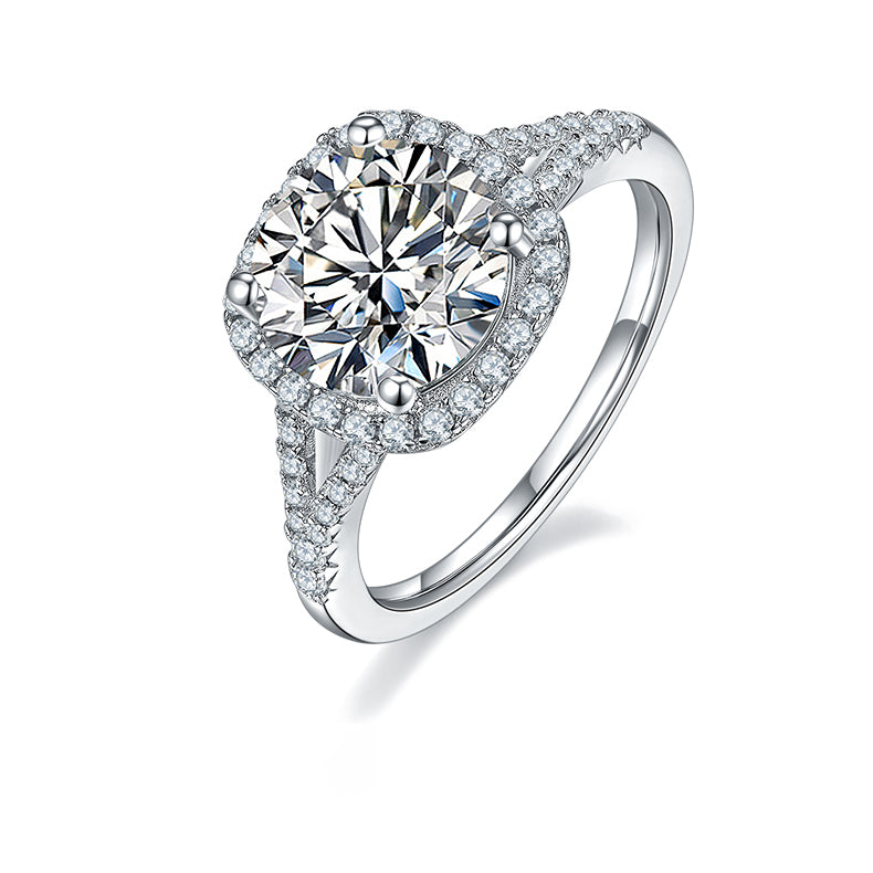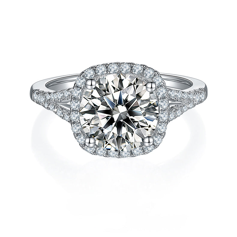 This ring uses the high quality 3.0 carat Moissanite, and the cutting and polishing technology of the stone makes it shiny in any occasion. The modern split shank and square halo design with multiple small Moissanite are the characteristics of this ring, making it more gorgeous and elegance. This Moissanite ring is not only suitable for gifts and engagement, but also for various occasions such as dinners, dances, weddings, etc. It can make you the focus of the crowd.