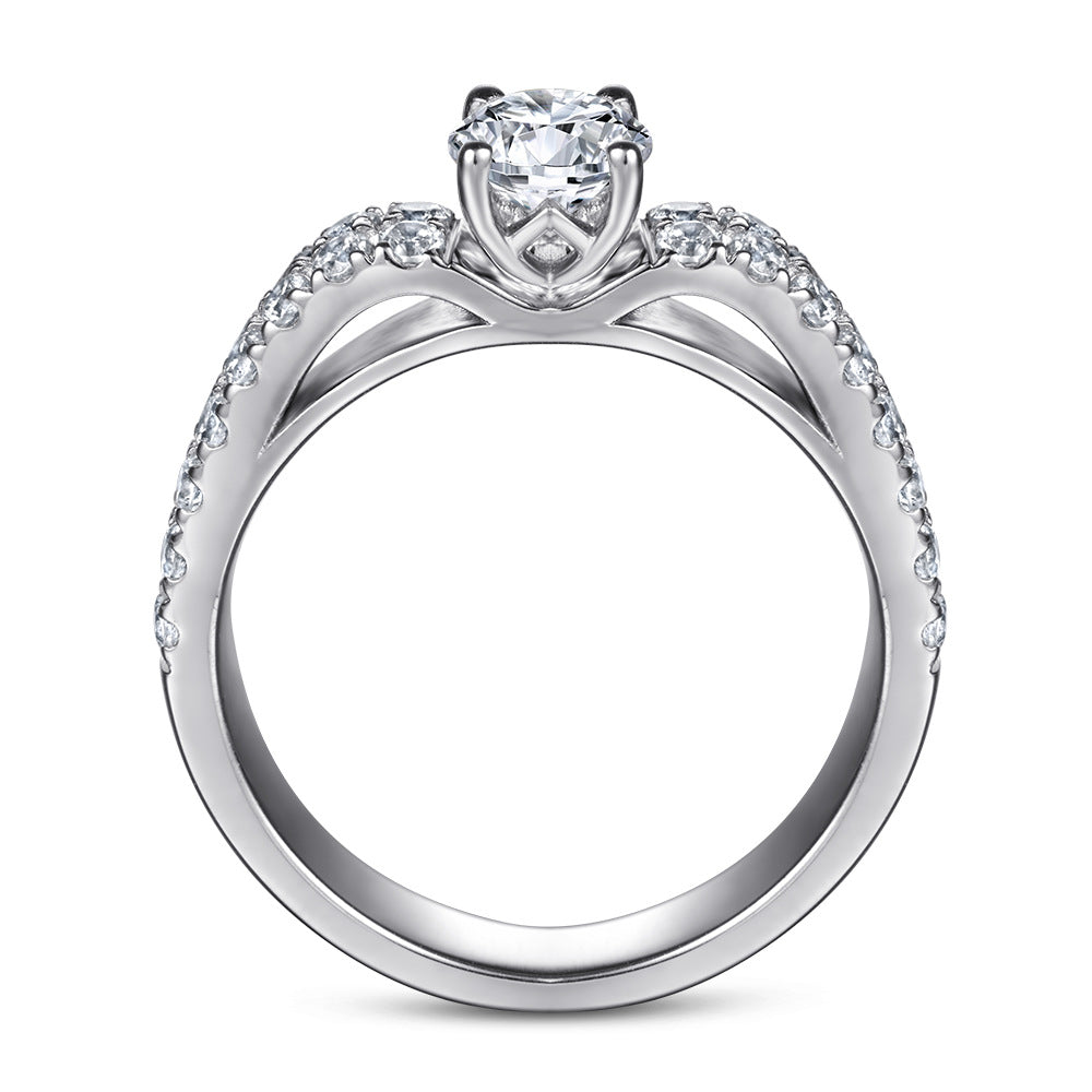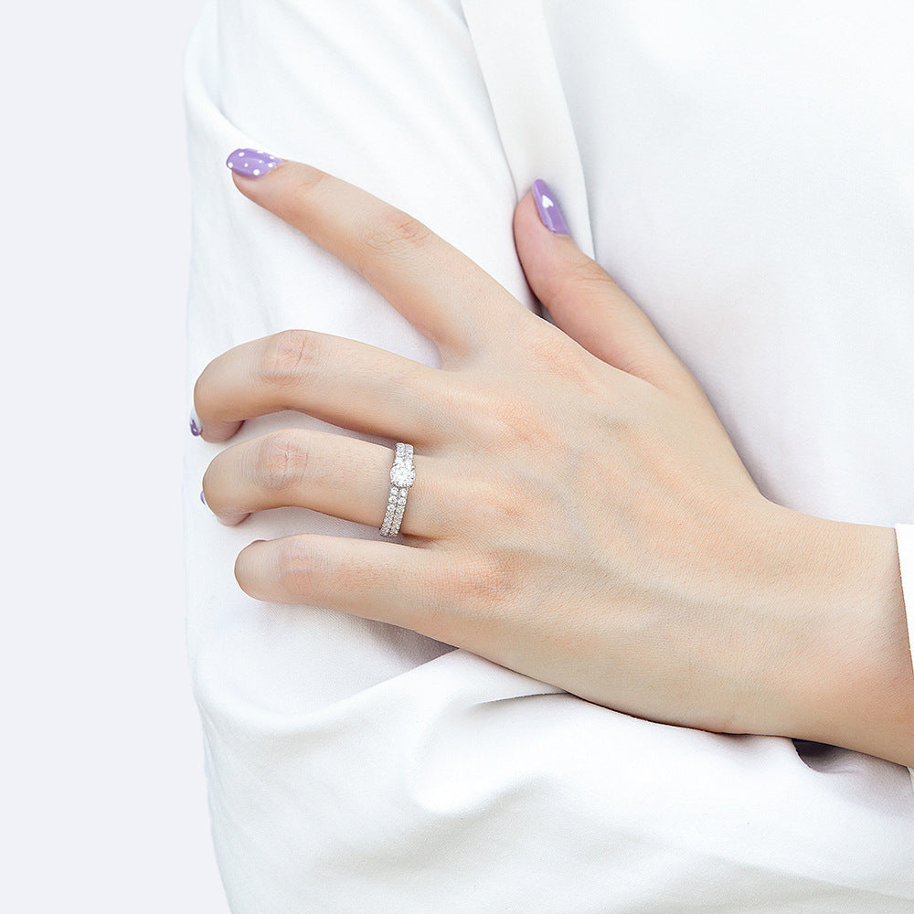 This Cathedral style Four Prongs Round Zircon Double Row Silver Ring for Women features a round cut zircon for timeless design with double row small zircon decorate the ring body for a unique sparkle. Made of pure silver, this ring is designed to last with its high-quality build and timeless design.