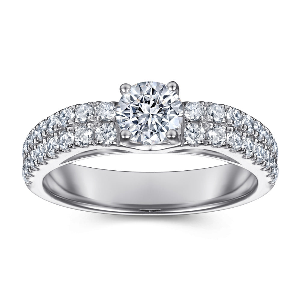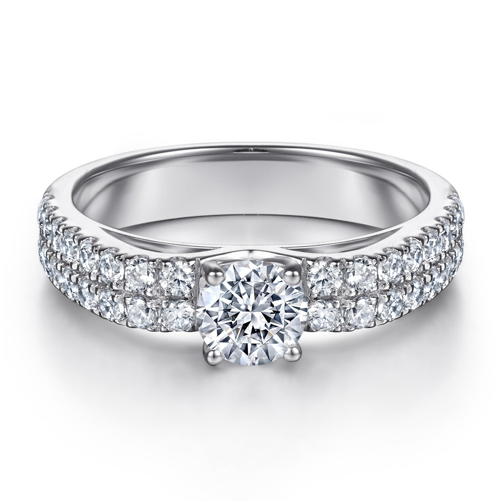 Four Prongs Round Zircon Double Row Cathedral Silver Ring for Women
