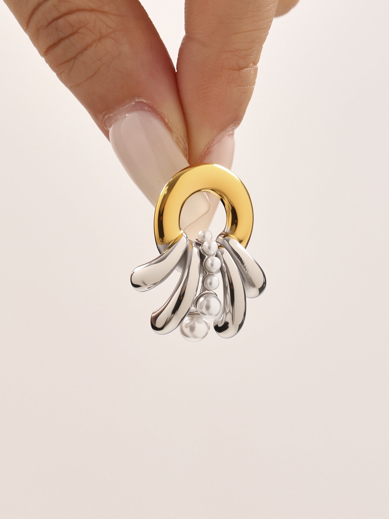 Planderful French bead multi-layer earrings from the Everyday Genie collection. These light luxury niche-design stud earrings are crafted in stainless steel that does not fade, offering enduring shine with a minimalist, modern silhouette.