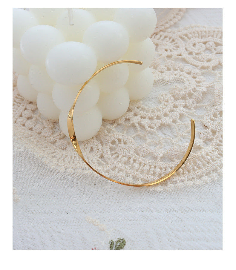 French Minimalist Twist Heart Bracelet in 18K Gold Plated Titanium Steel - Stylish Jewelry for Women