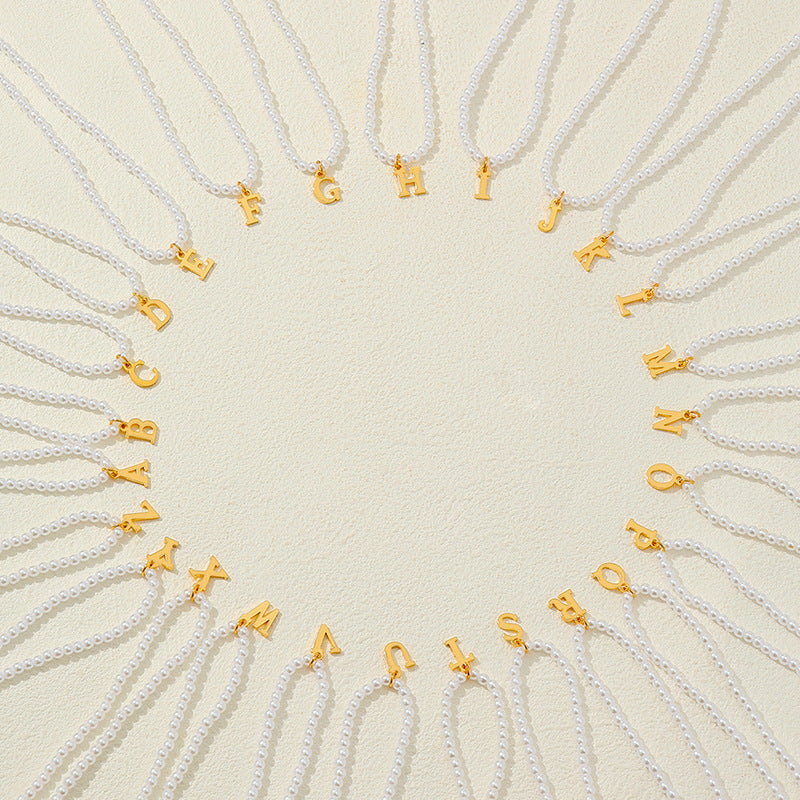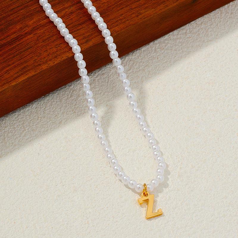 French Retro Pearl Necklace with Metal English Letter Pendant - Vienna Verve Collection