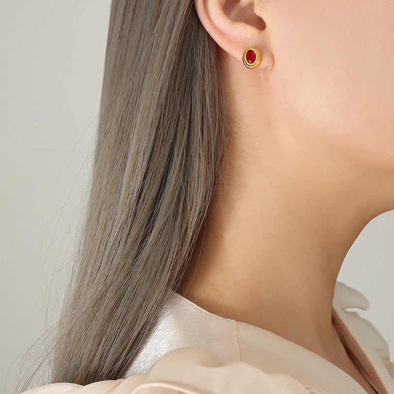 Vibrant Retro Red and Green Zircon Cross-Border Earrings with 18K Gold Plating