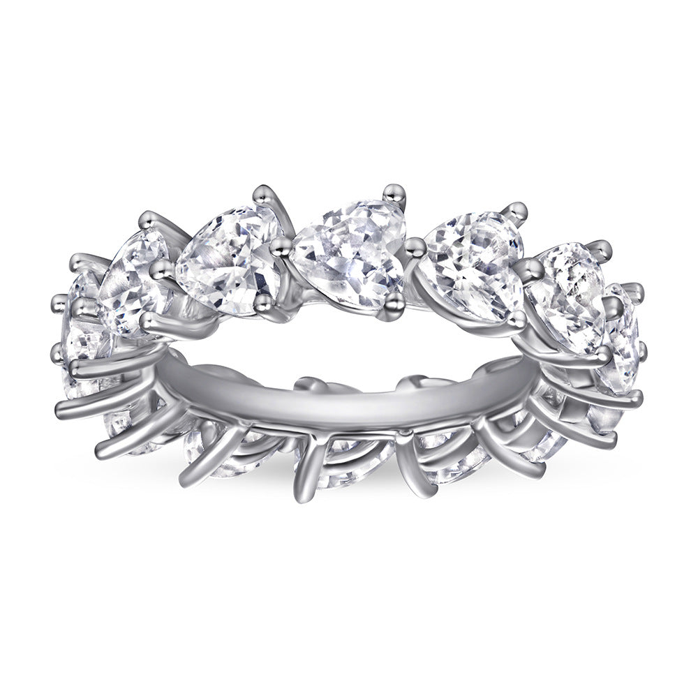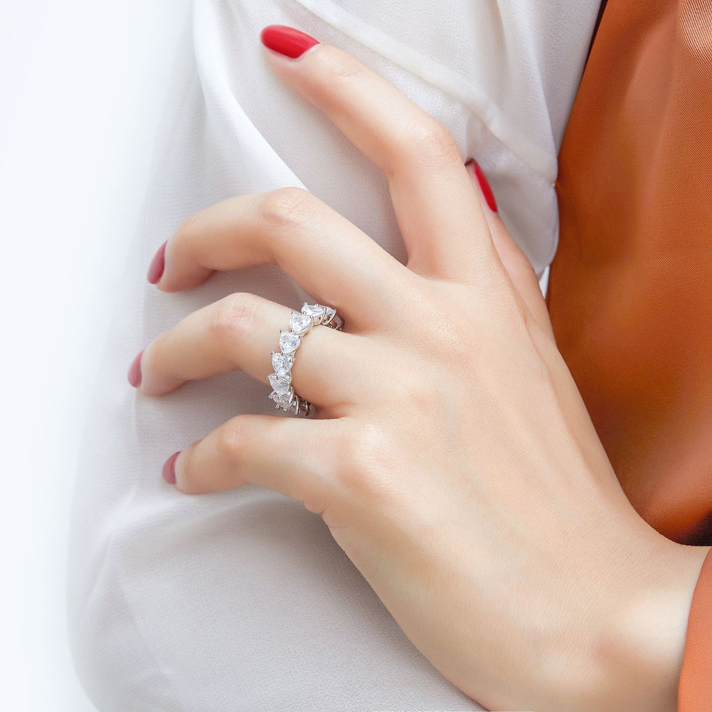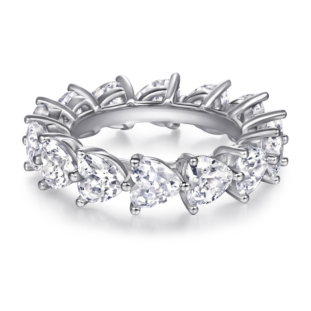 This elegant Full Circle Three Prongs Heart-shaped Zircon Silver Ring for Women composed with heart-shaped zircon stones for eye-catching sophistication. Crafted from quality sterling silver, this glamorous ring is perfect for any occasion.