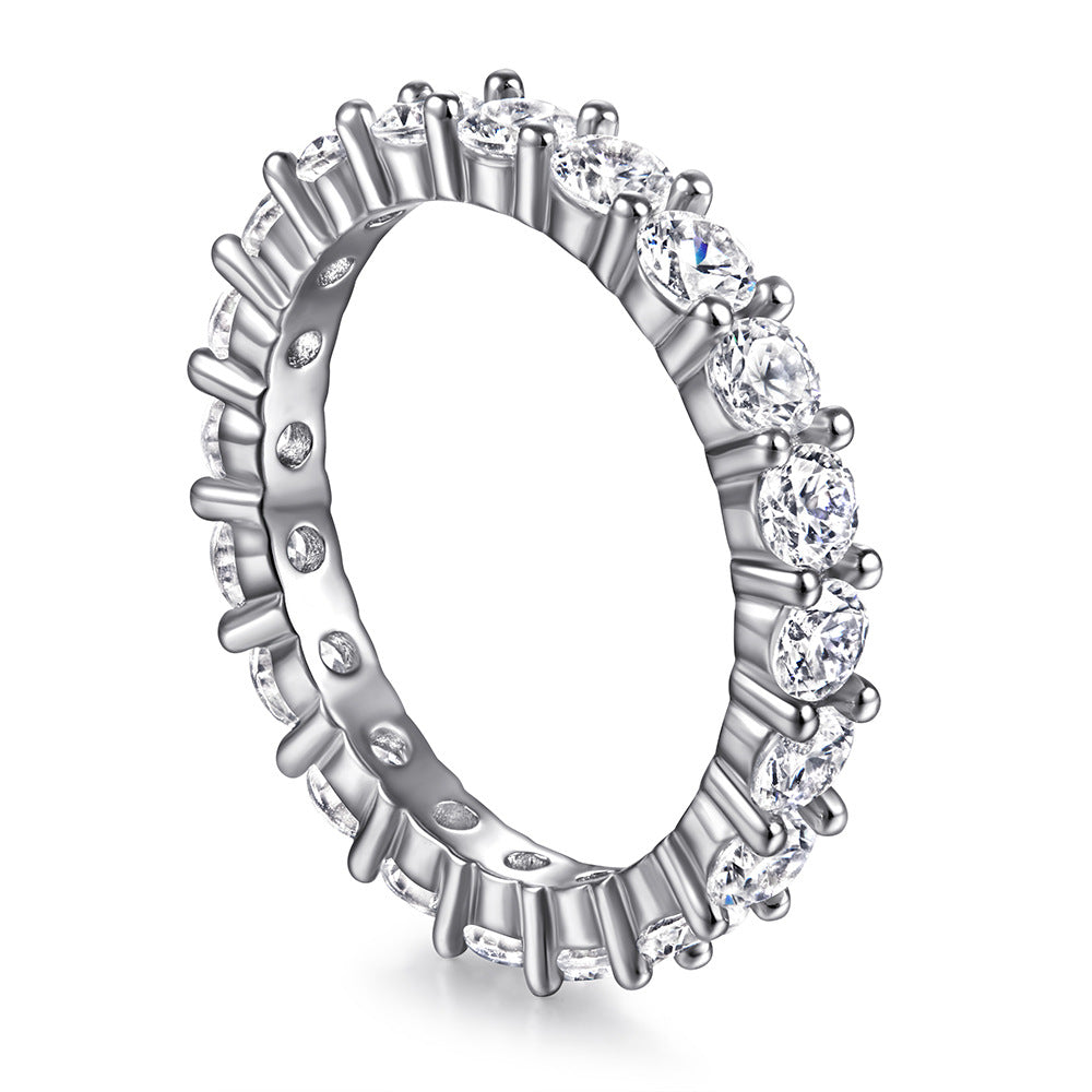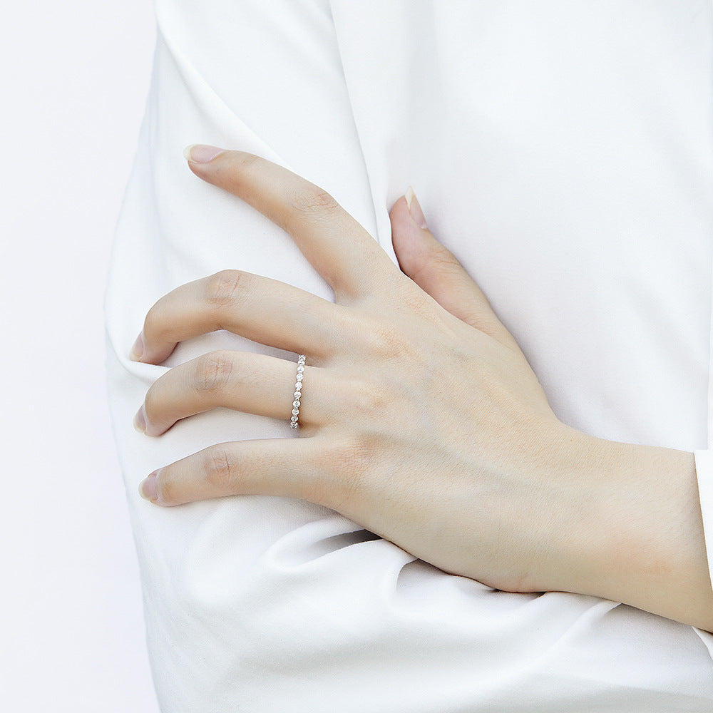 This Full Round Zircon Silver Ring for Women is crafted with stunning round shape zircon stones of classic brilliance. Featuring an elegantly designed compose with round zircons of full circle setting, this precious ring is sure to add sparkle and sophistication to any look.