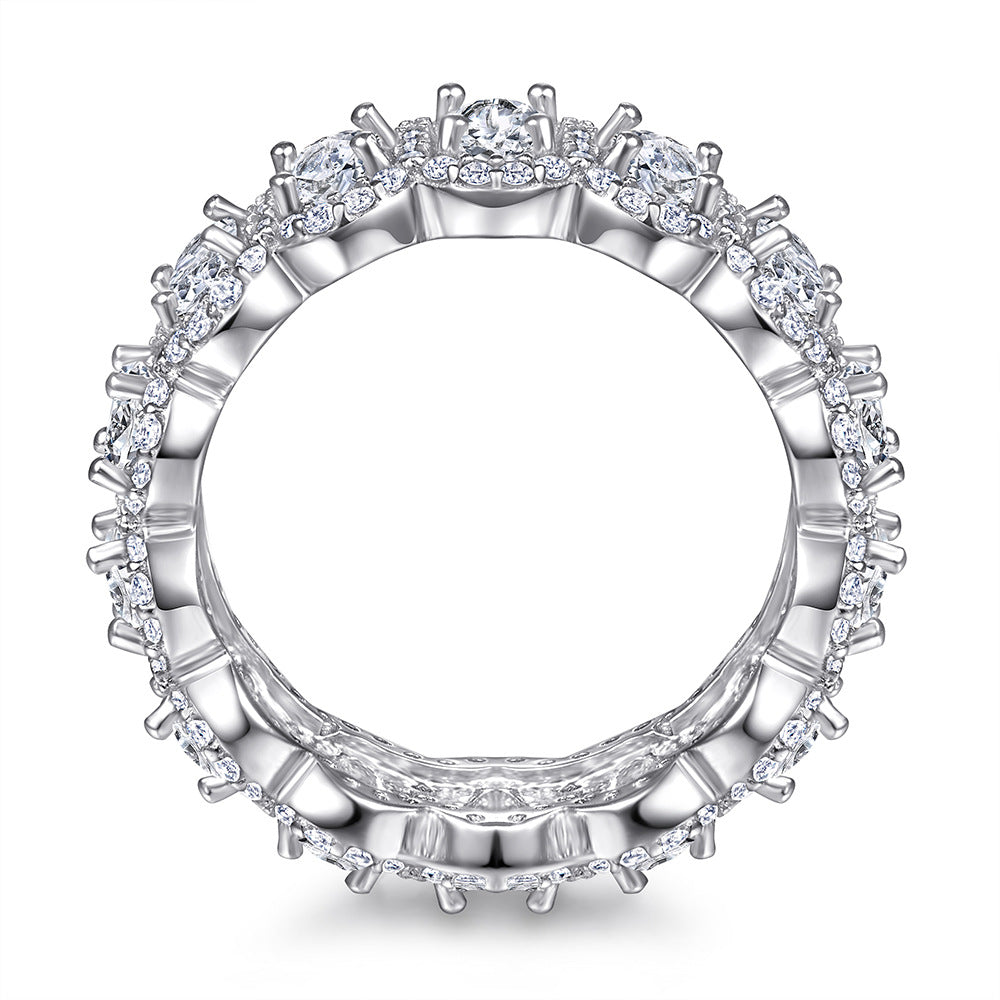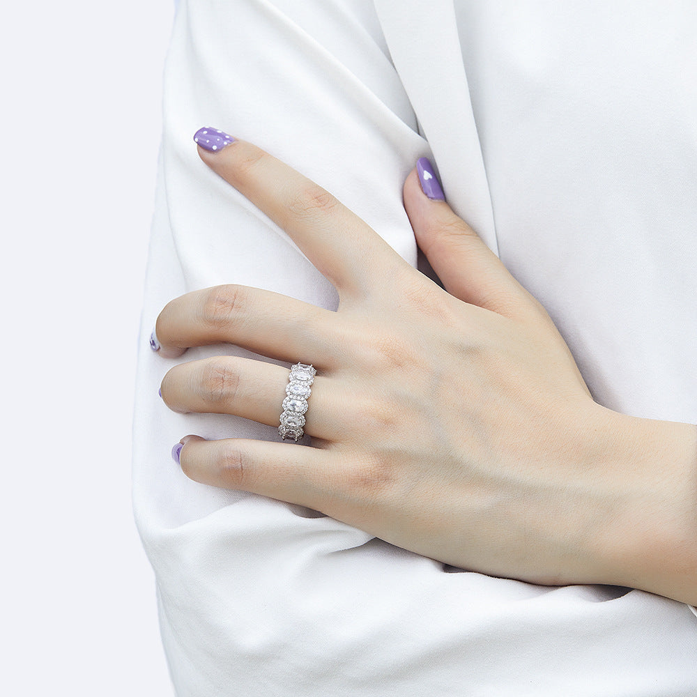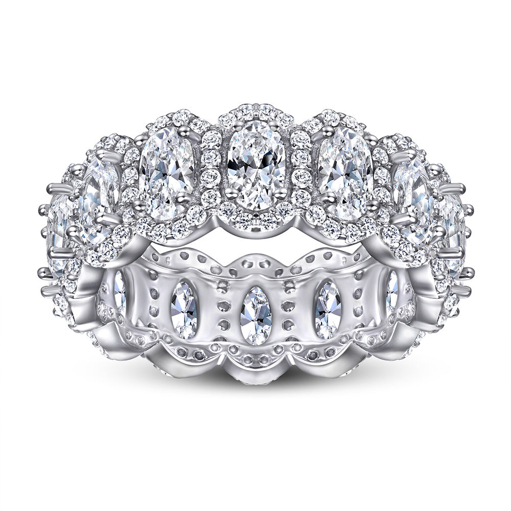 Charm the day with this magnificent Exaggerated Oval Zircon Beading Silver Ring for Women. Featuring an exaggerated ring band and composed of Oval Shape Zircons with soleste halo, this ring is sure to make a statement. Shine brightly with this sophisticated piece of jewelry.