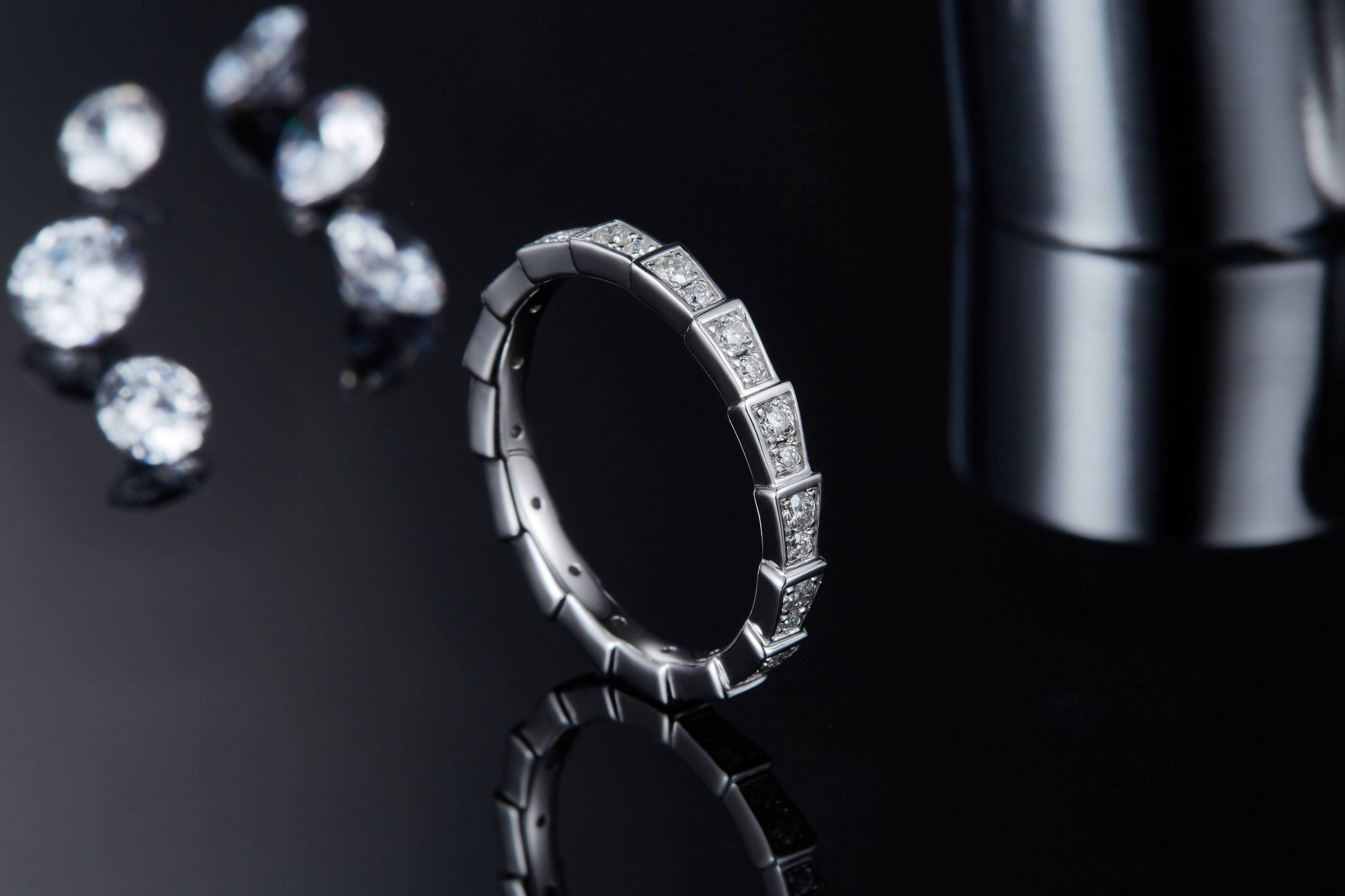 If you are looking for a unique and fashionable piece of jewelry, then our mechanical snake bone-shaped Moissanite diamond ring is your best choice.