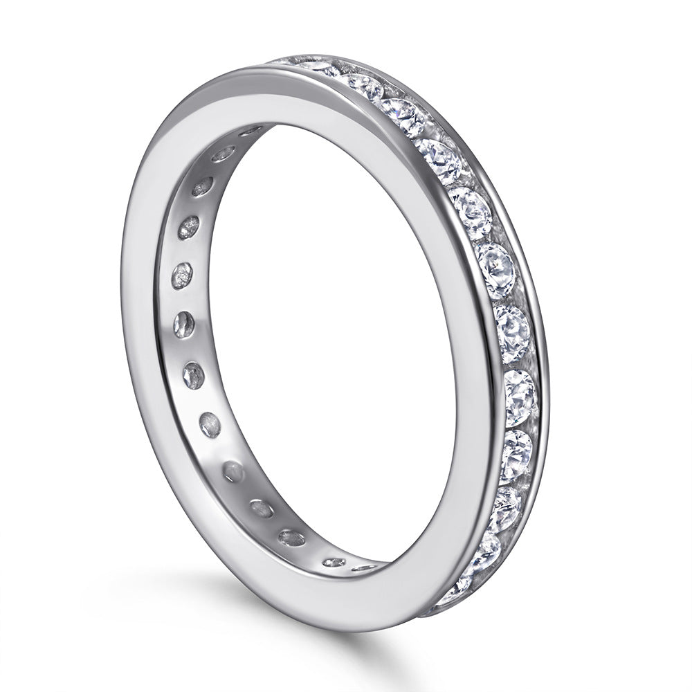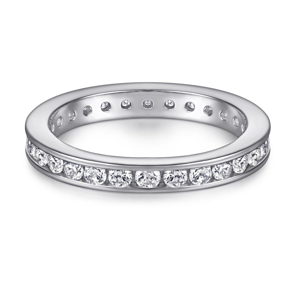 Make an elegant statement with this Full Circle Round Zircon Eternity Silver Ring for Women. Composing with  beautiful round zircon in the eternity band, this special ring will last a lifetime and never go out of style. Perfect for any occasion, this timeless piece of jewelry is sure to impress.