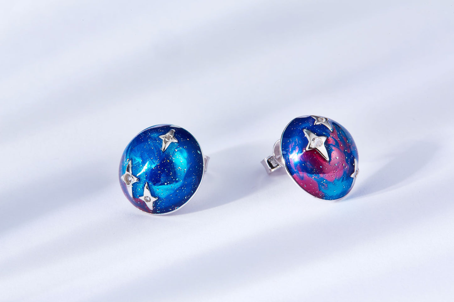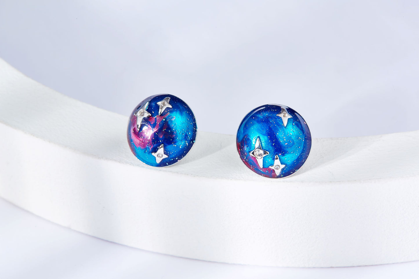 This elegant Galaxy Star Light Enamel Silver Studs Earrings will make you shine whenever you wear them. Made with premium quality enamel and sterling silver, this earrings feature a shiny blue surrounded by starlight. It's erfect for any special occasion.