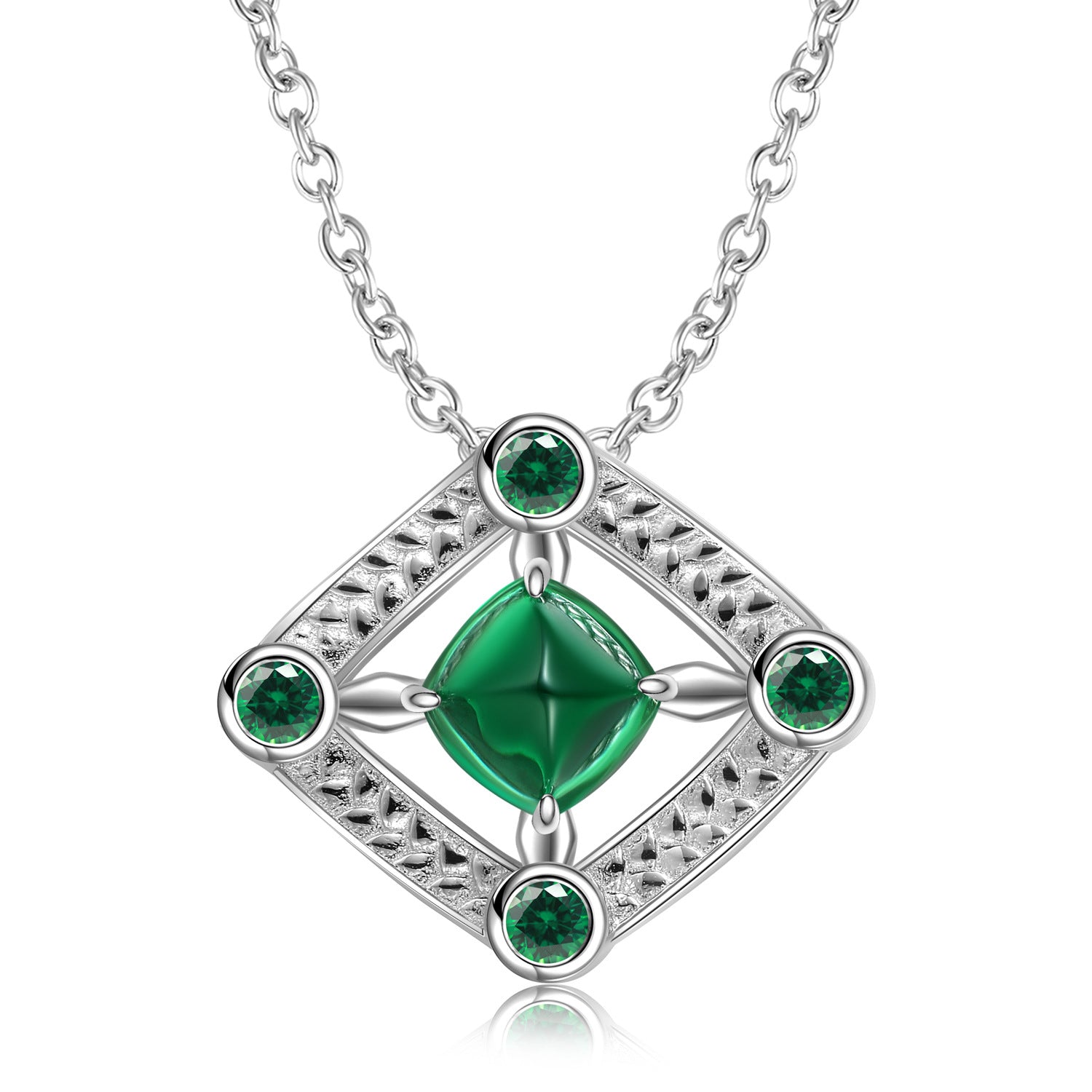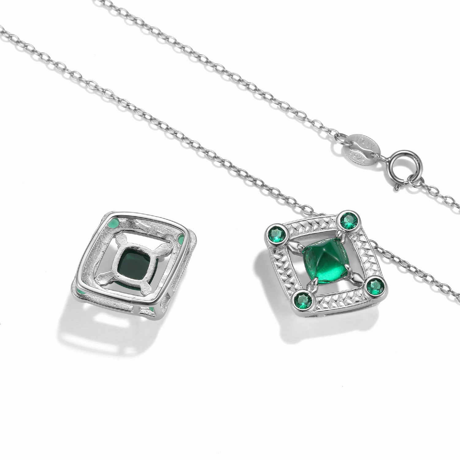 Geometry Square Green Nanometer Stone Rhombus Sterling Silver Necklace