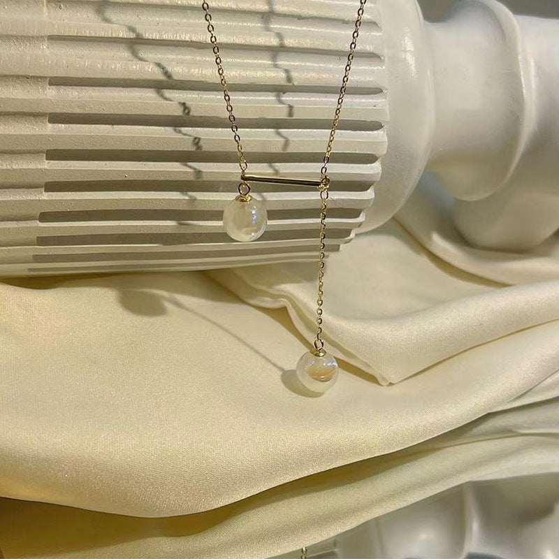 Gold Colour Double Pearls Dissymmetric Pendants Collarbone Necklace for Women