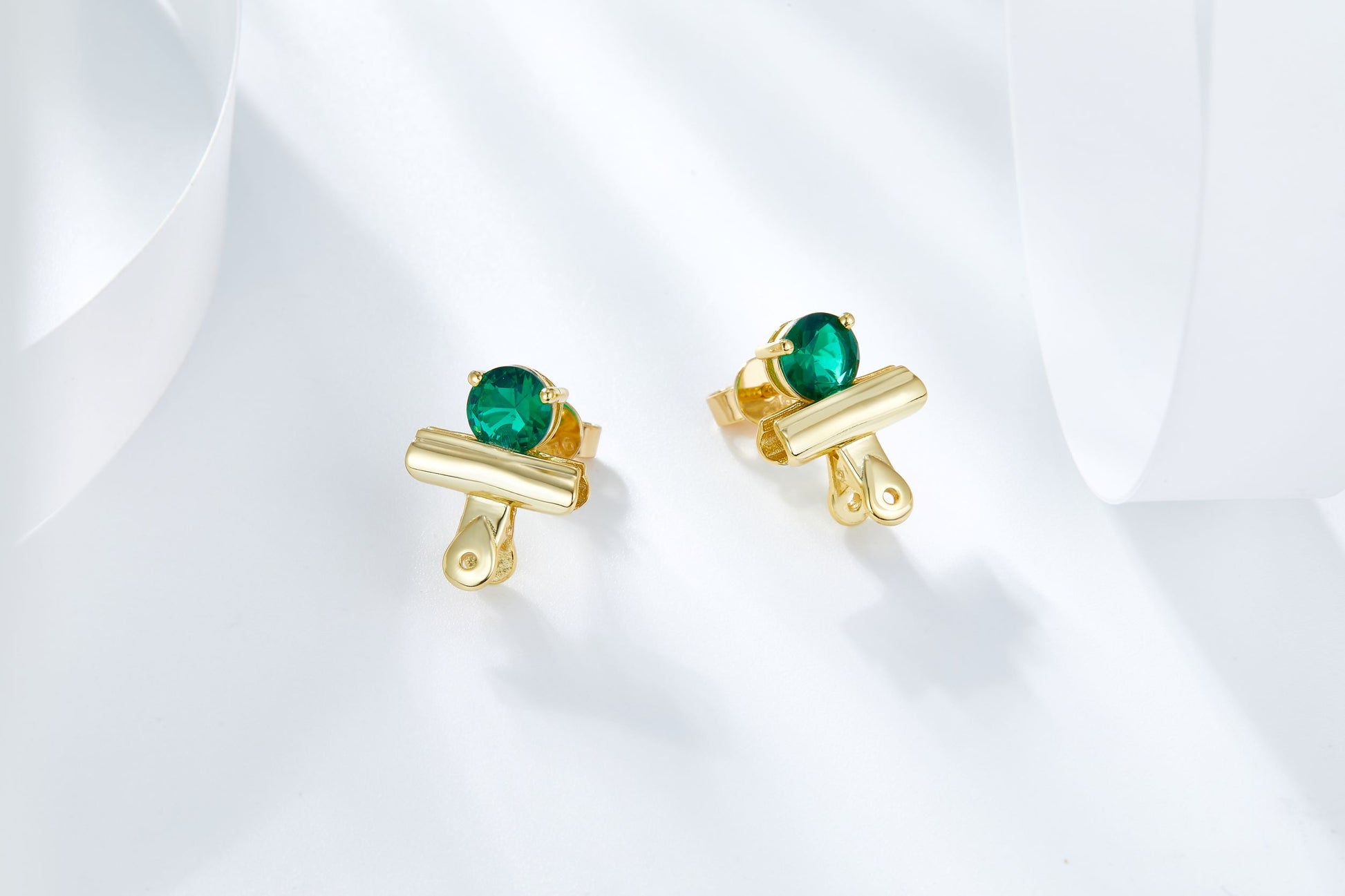 Look beautiful in this Clip Shape Round Cut Lab Created Emerald Stud Earrings  Women. Feature a unique clip design while the lab-created Emerald Stone creates a luxurious look. This timeless combination creates an elegant yet bold look for any special occasion.