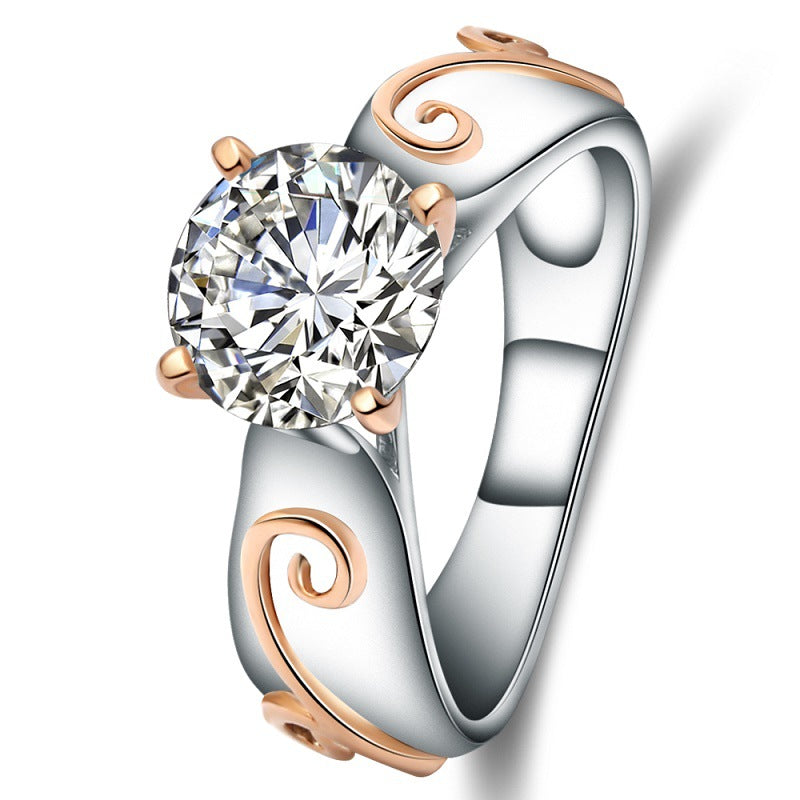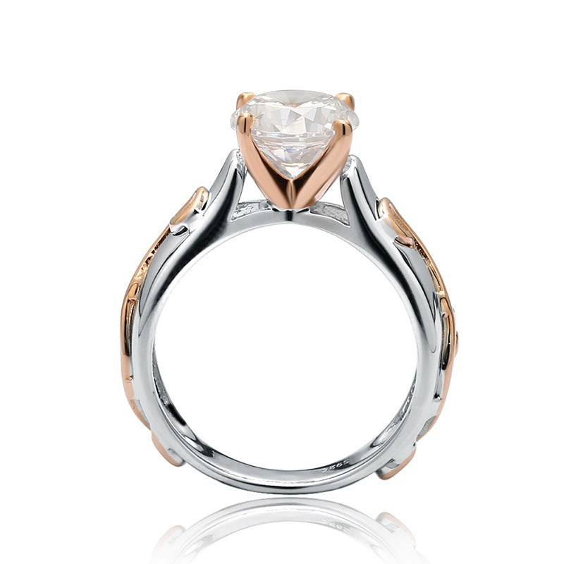 This S925 silver ring is perfect for adding a touch of sparkle to any outfit. The round cut zircon provides shimmer and brilliance, while the rose gold pattern on the ring arm adds subtle sophistication. Crafted with sterling silver ensures long-lasting quality.