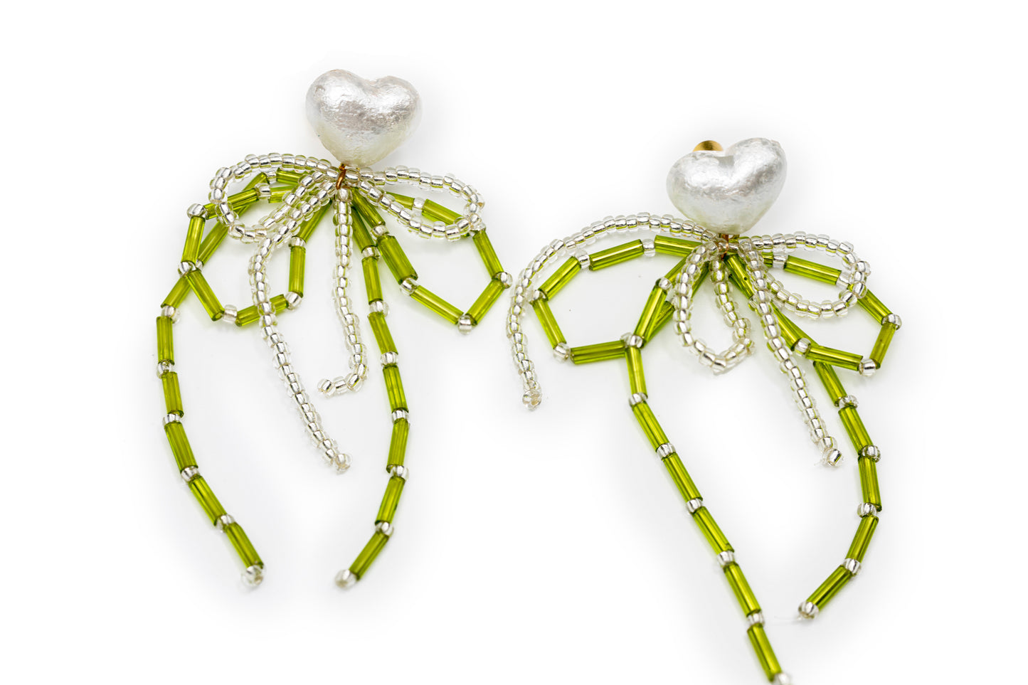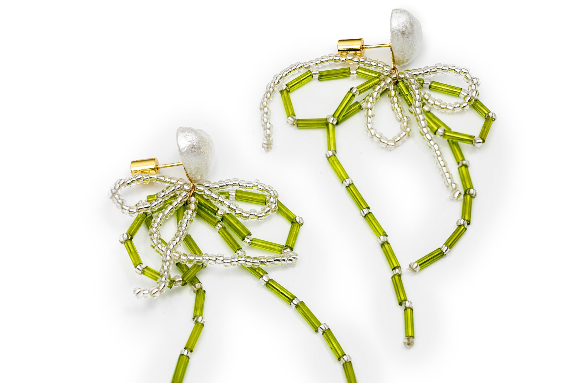 This beautiful earrings is crafted with a green bowknot and delicate pearl drop. They add a subtle and sophisticated touch to any ensemble. The lightweight design ensures a comfortable fit and long-lasting wear. This elegant earrings is ideal for both everyday and special occasions.