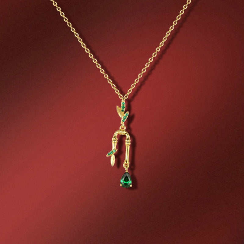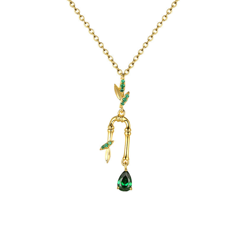 Green Zircon Bamboo Leaf Silver Necklace for Women
