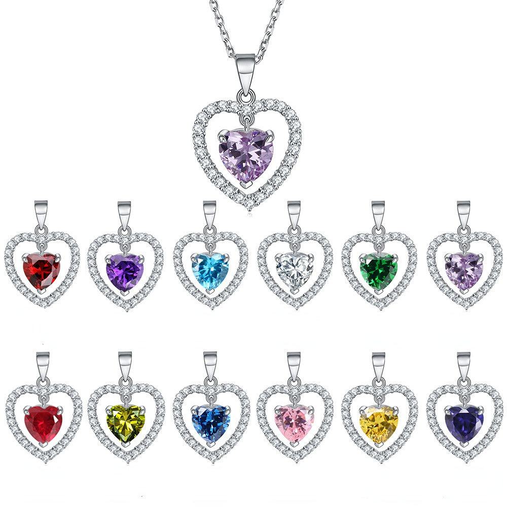 Colourful Heart Zircon Pendant Silver Necklace for Women
