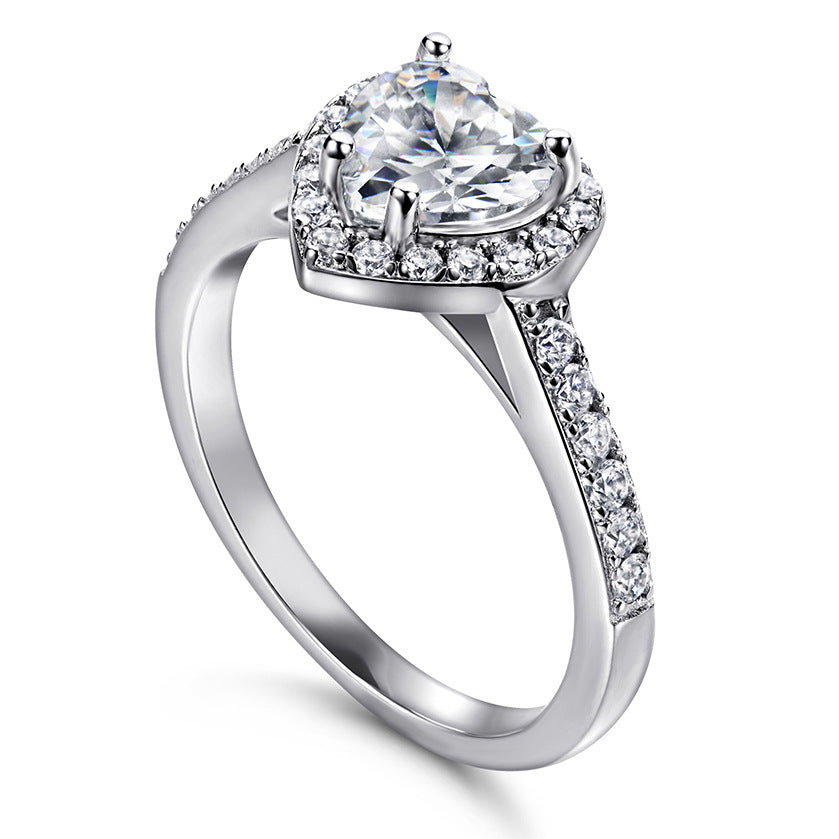 Heart-shaped Zircon Soleste Halo Silver Ring for Women