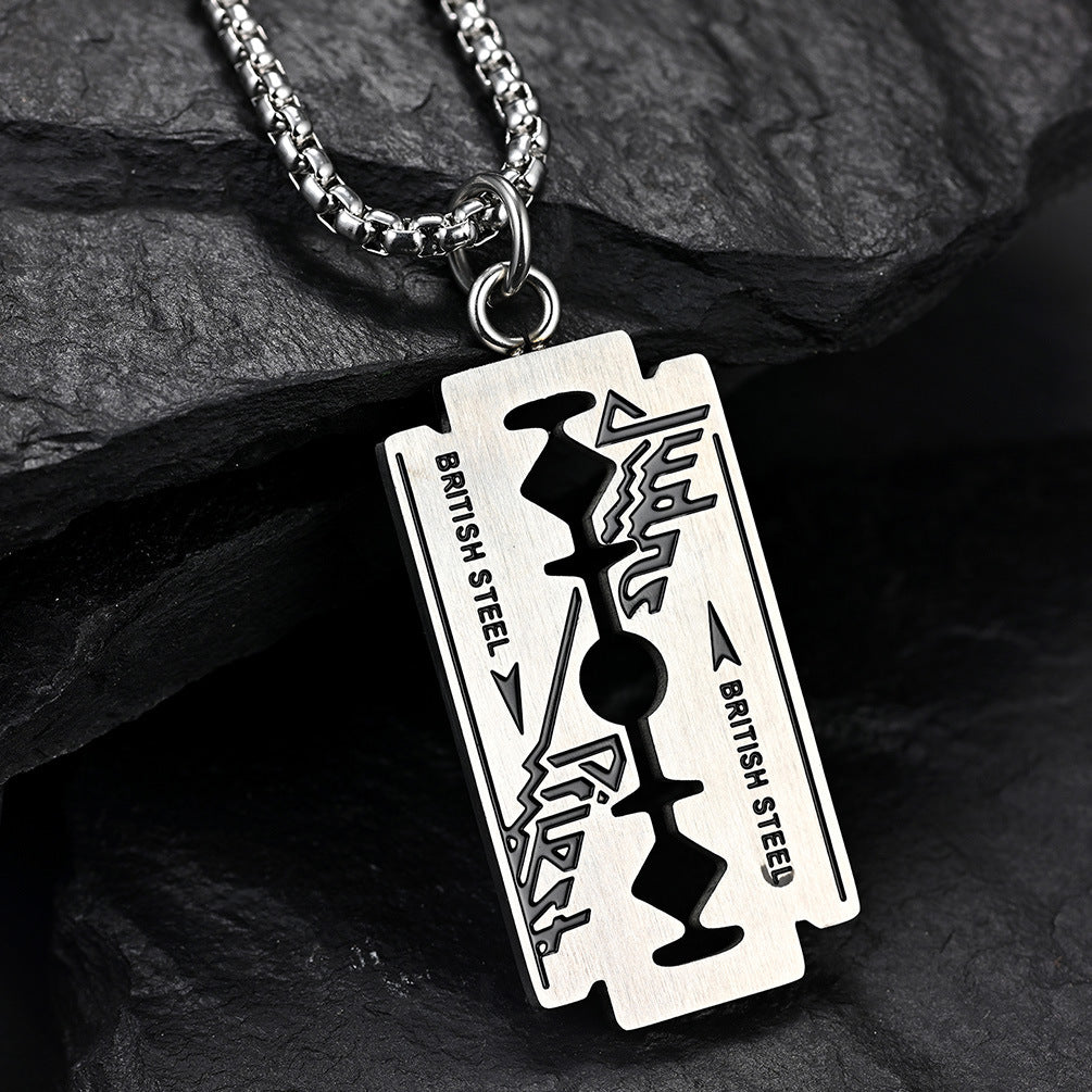 Hip-Hop Locomotive Metal Wind Razor Blade Necklace for Men