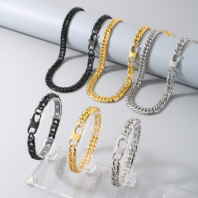 Hip Hop Denim Chain Stainless Steel Men Bracelet Necklace