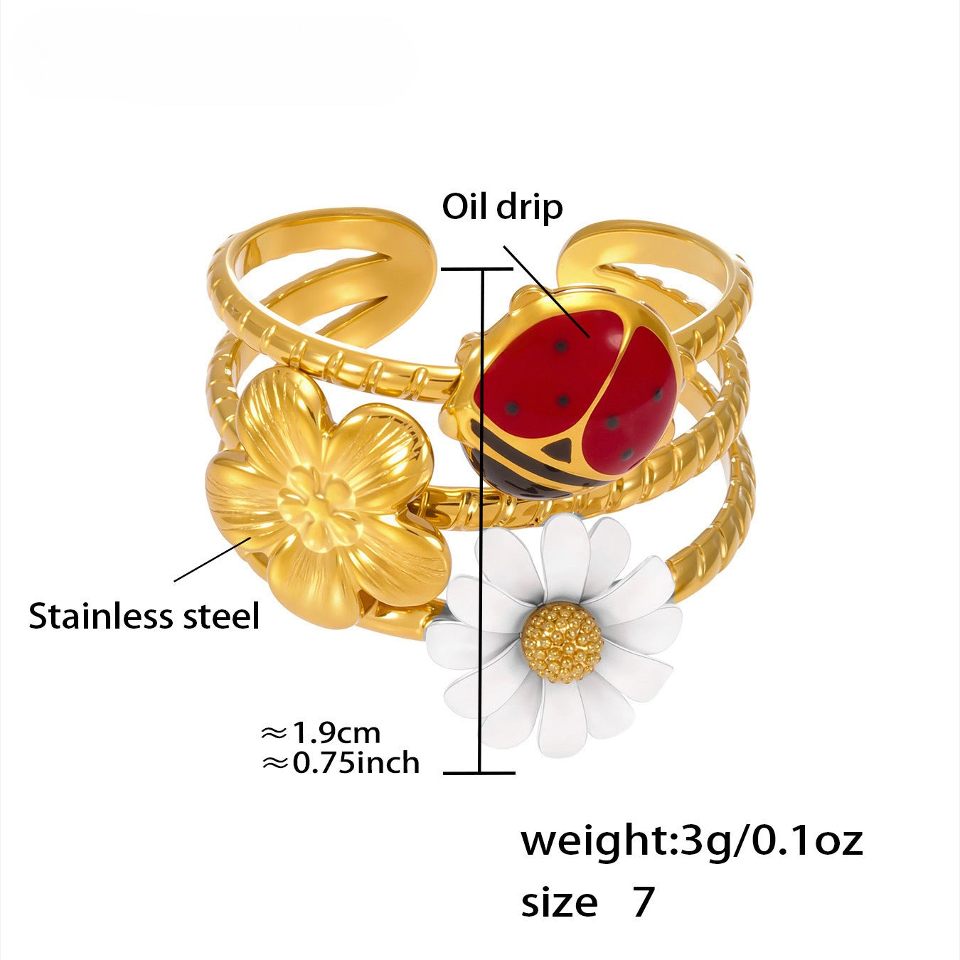 Planderful Hollow Oil Drop Zircon Daisy Ladybug Ladies Ring