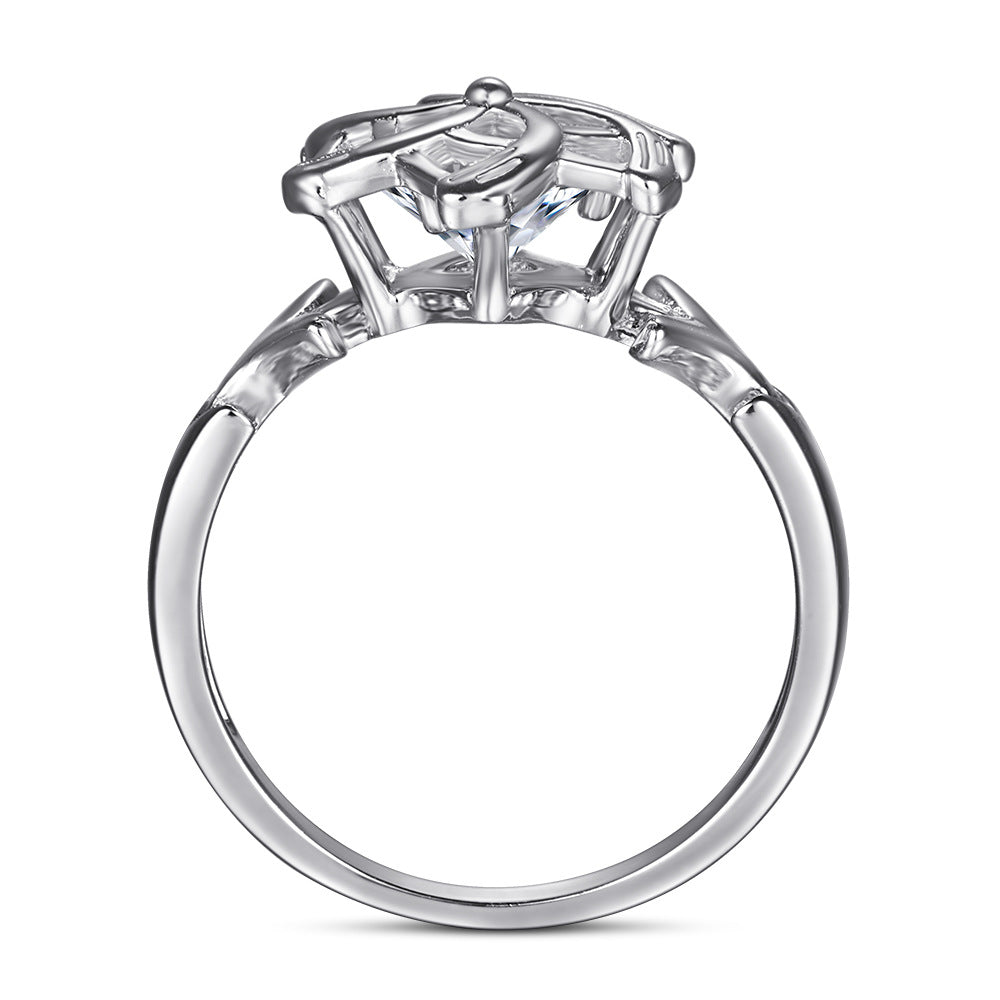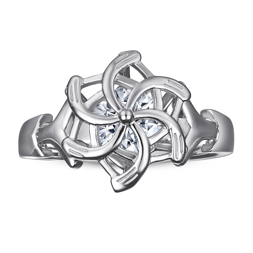 Hollow Windmill with Round Zircon Silver Ring for Women