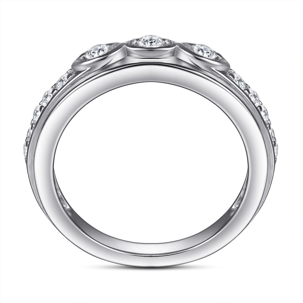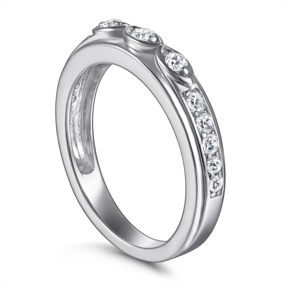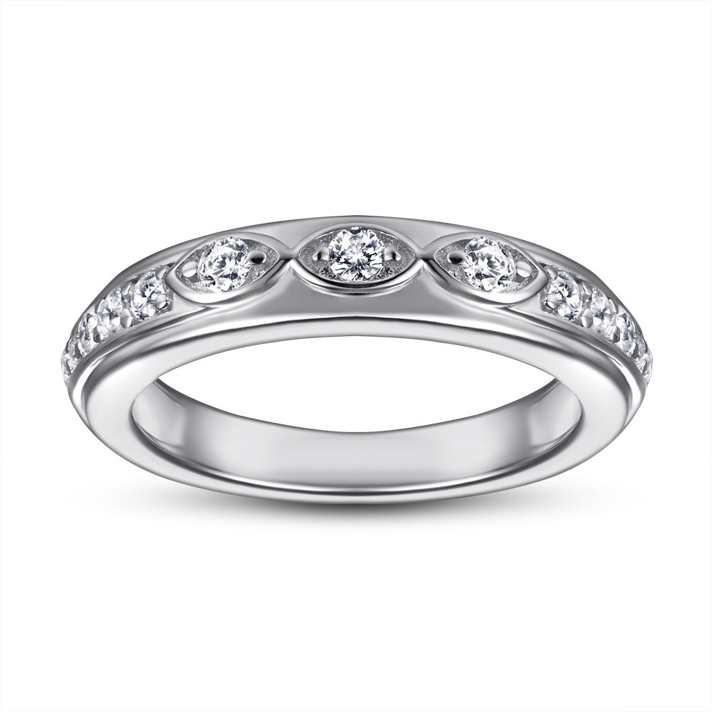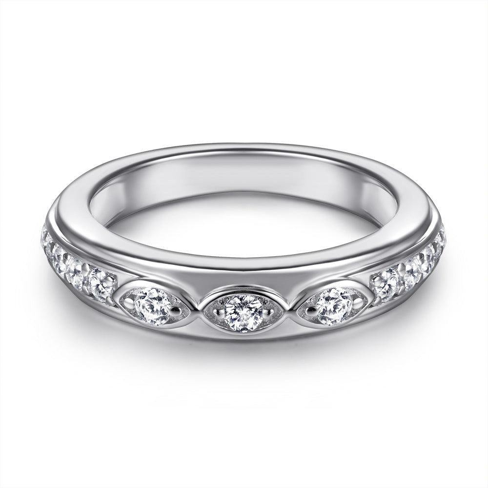This stylishly sophisticated marquise shape with zircon silver ring features three marquise shape patterns with round zircons for a sparkling look. The ring arm is delicately decorated with zircons for a unique sense of style, perfect for any occasion.